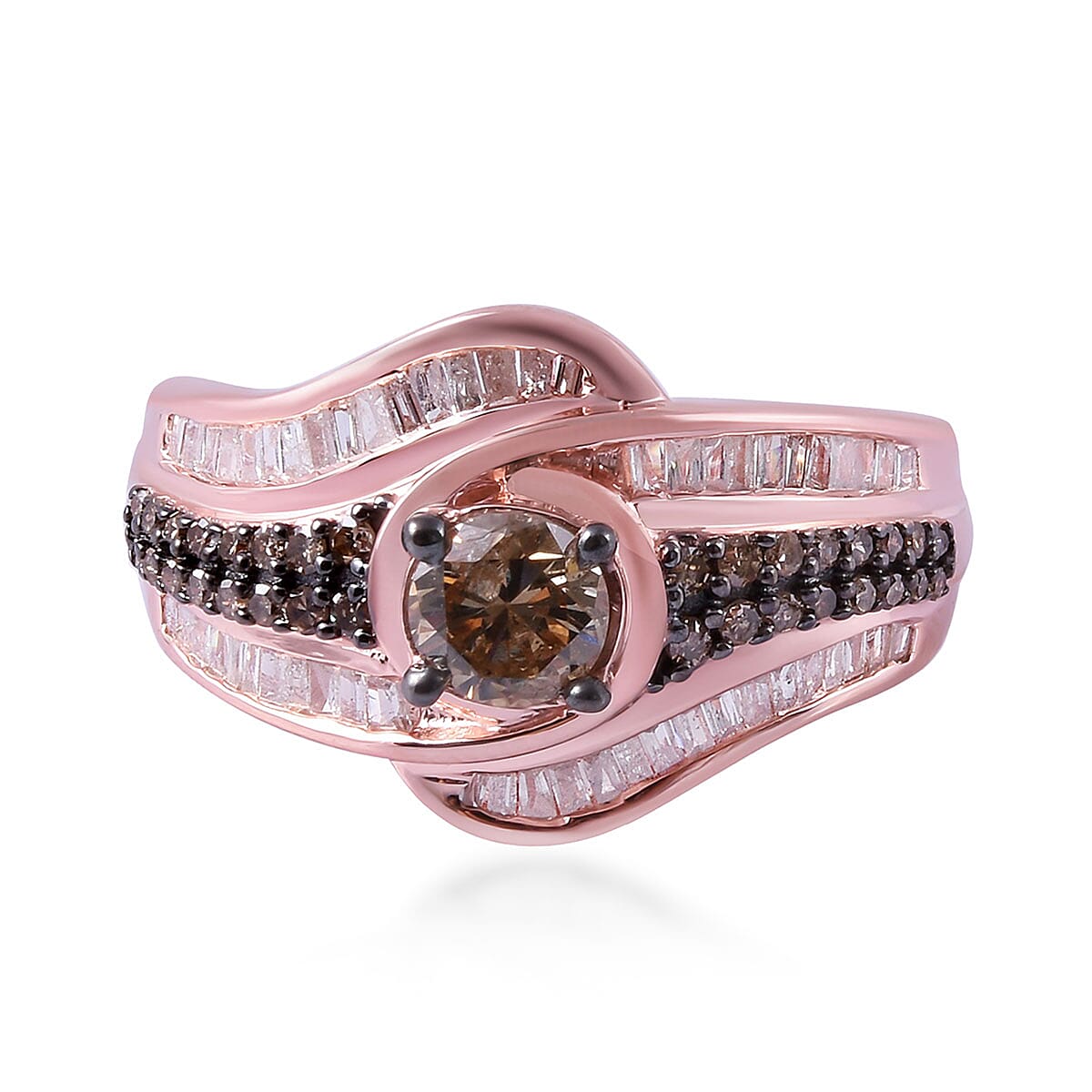 Natural Champagne Diamond and Diamond 1.00 ctw Ring in Vermeil Rose Gold Over Sterling Silver (Size 9.0)