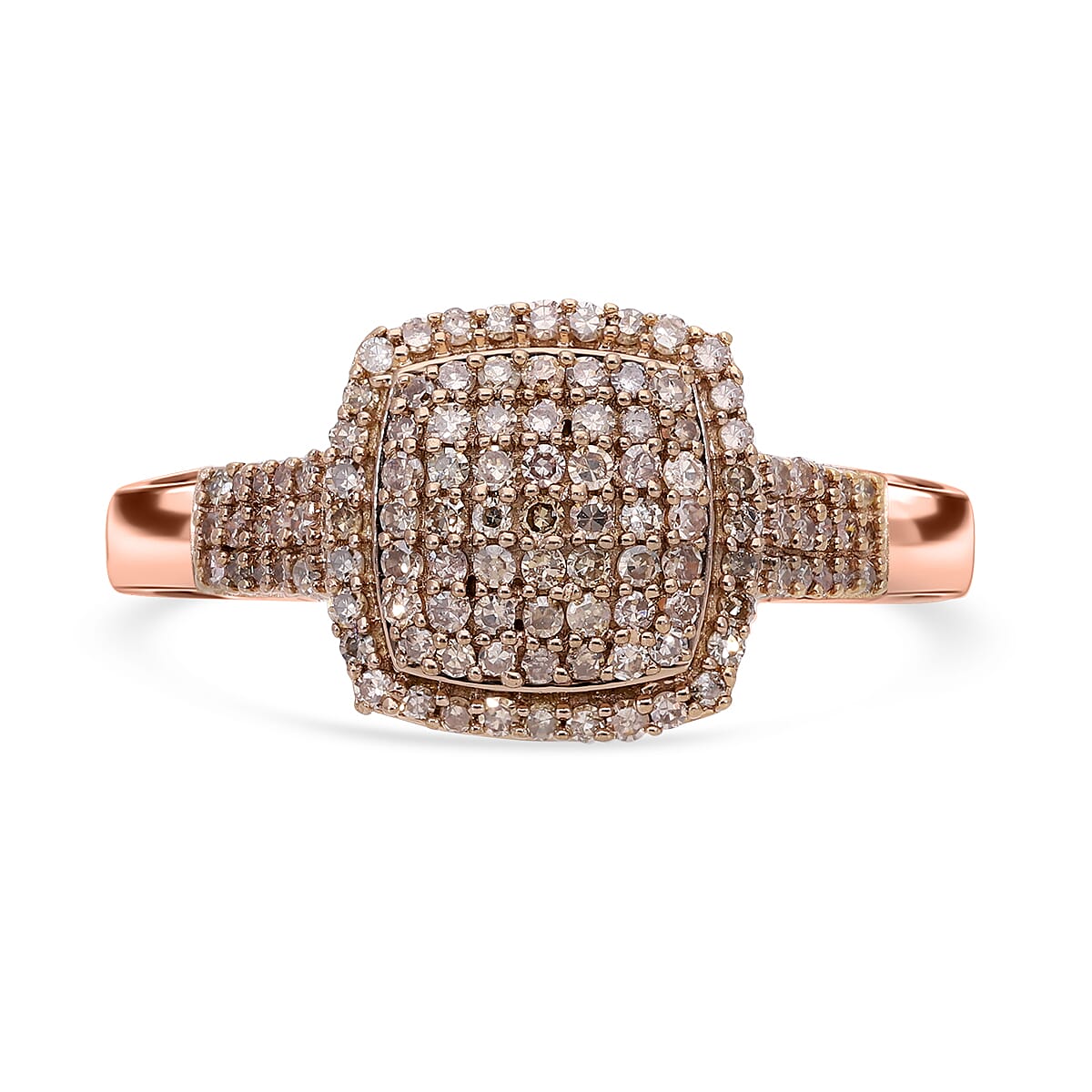 Natural Champagne Diamond Art Deco 0.50 ctw Ring in Vermeil Rose Gold Over Sterling Silver (Size 9.0)