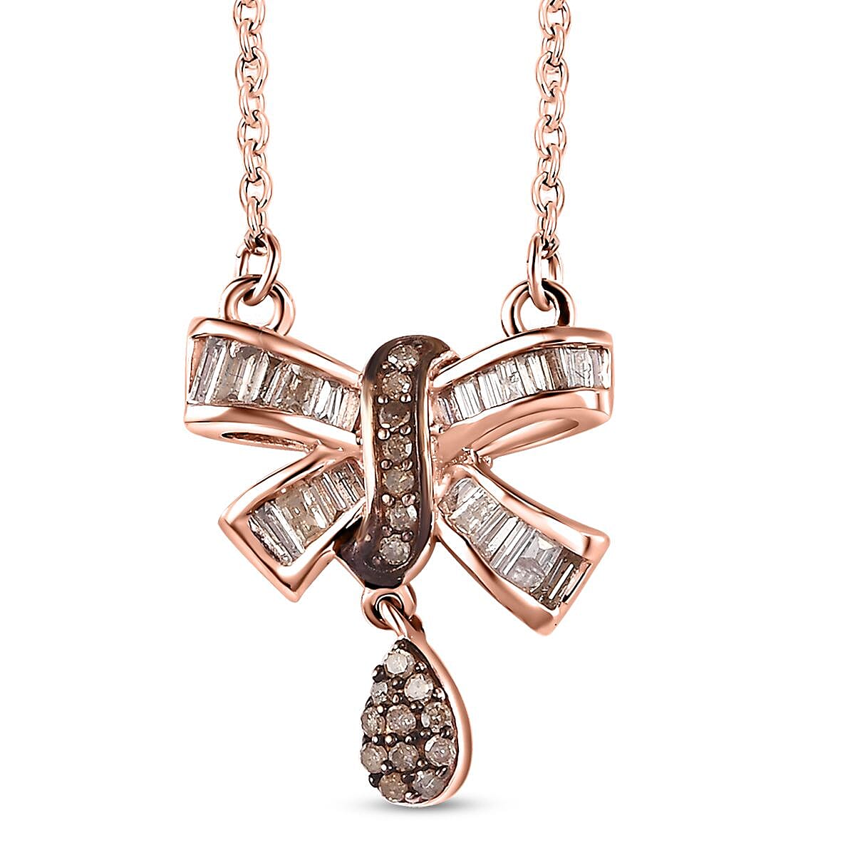 Natural Champagne Diamond Bow Necklace 18-20 Inches in Vermeil Rose Gold Over Sterling Silver 0.33 ctw