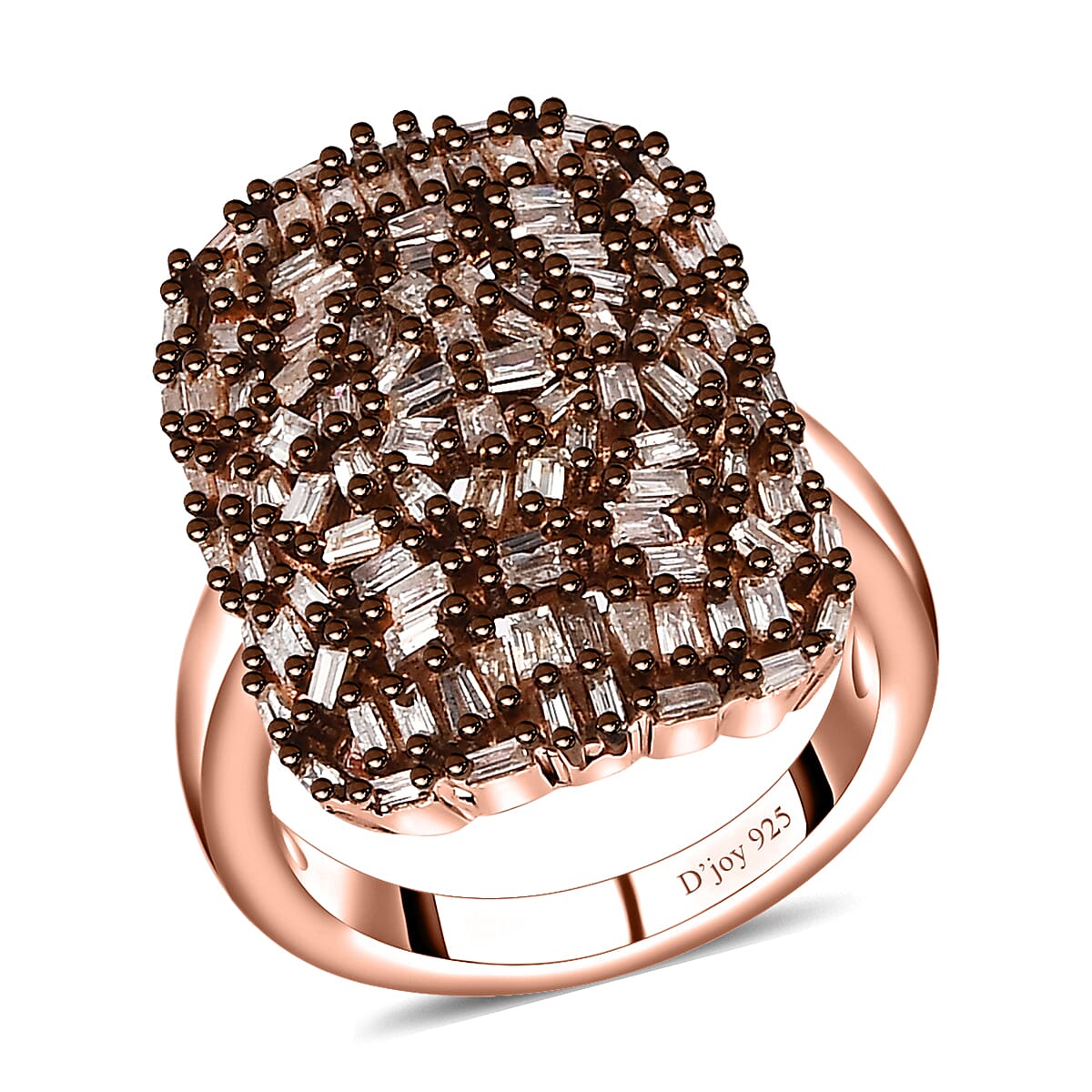 Natural Champagne Diamond Cluster Ring, Champagne Diamond Ring, Cluster Cocktail Ring, Vermeil Rose Gold Over Sterling Silver Ring, Champagne Diamond Jewelry For Her 1.00 ctw (Size 6.00)