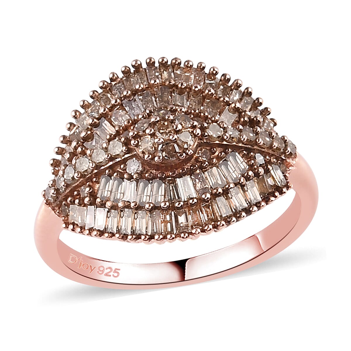Natural Champagne Diamond Cluster Ring in Rhodium and Vermeil Rose Gold Over Sterling Silver (Size 10.0) 1.00 ctw