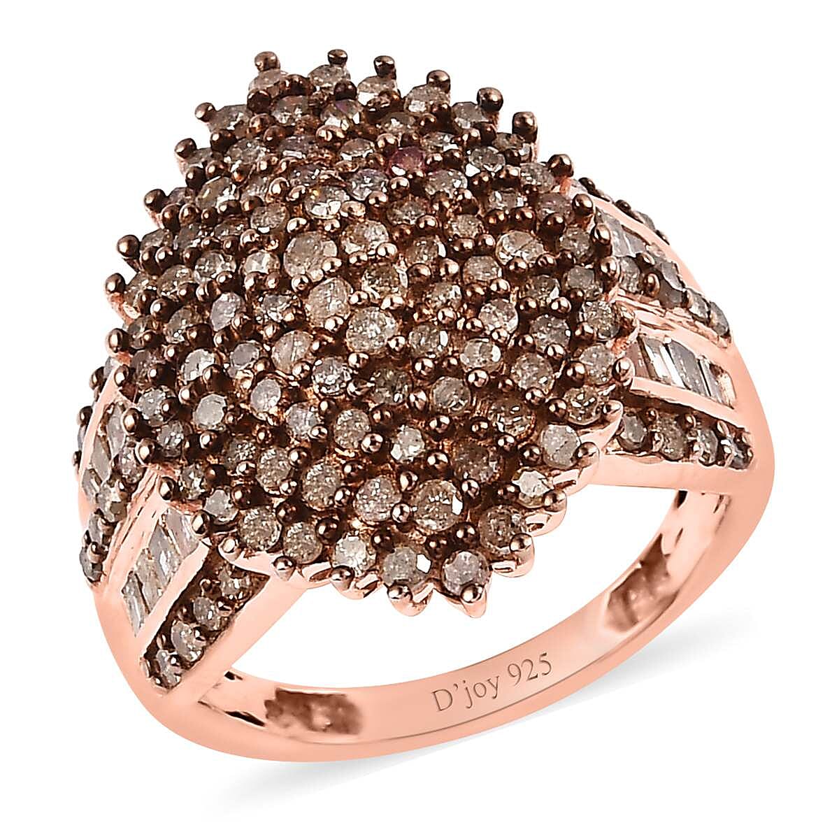 Natural Champagne Diamond Cluster Ring in Vermeil Rose Gold Over Sterling Silver (Size 7.0) 2.00 ctw