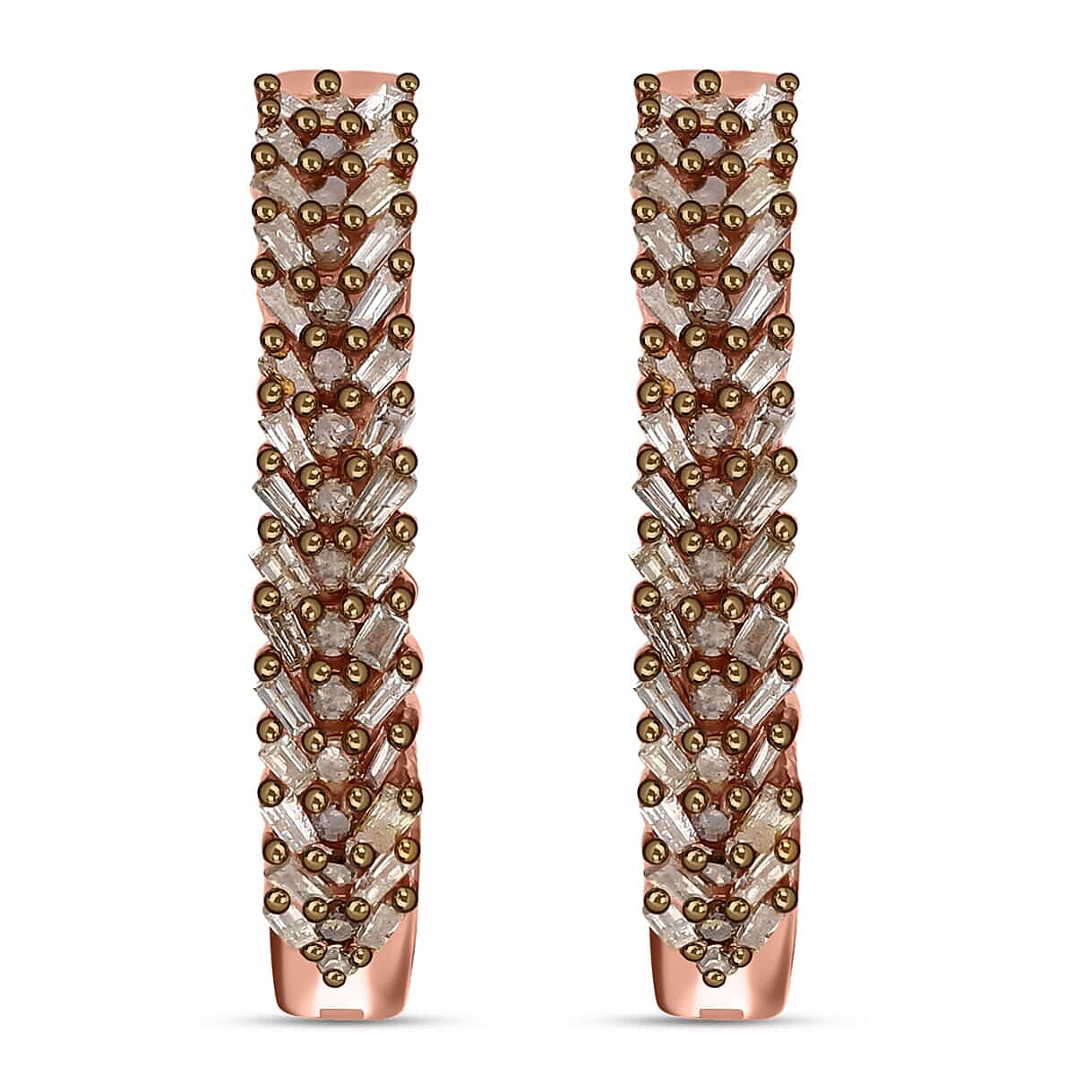Natural Champagne Diamond Earrings in Vermeil Rose Gold Over Sterling Silver 0.60 ctw