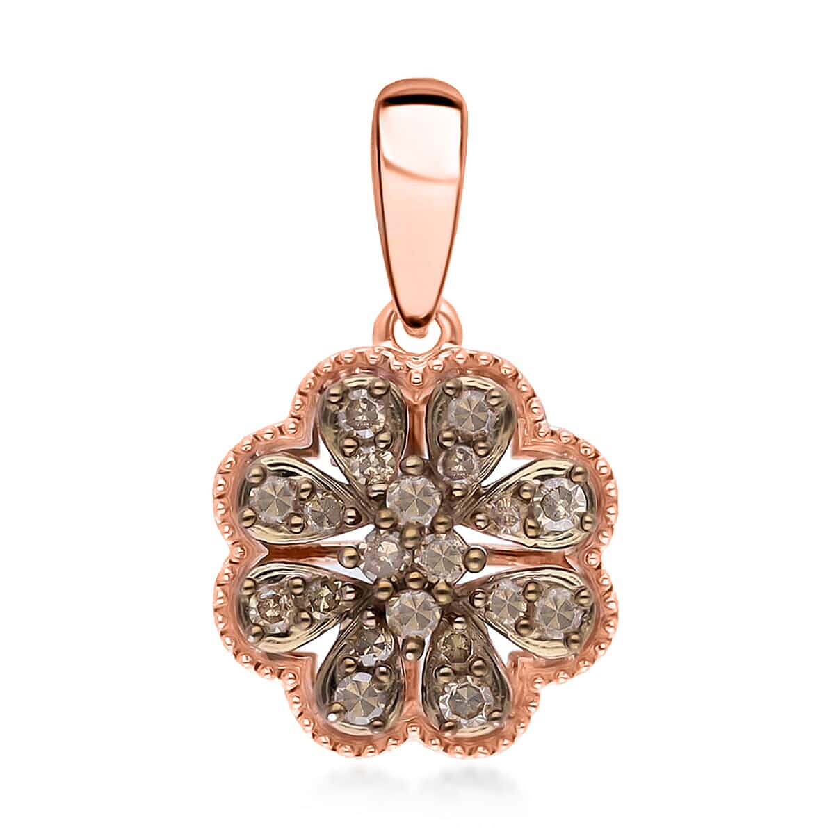 Natural Champagne Diamond Floral Pendant, Champagne Diamond Pendant, Rhodium and Vermeil Rose Gold Over Sterling Silver Pendant, Diamond Cluster Pendant, Floral Cluster Pendant 0.25 ctw