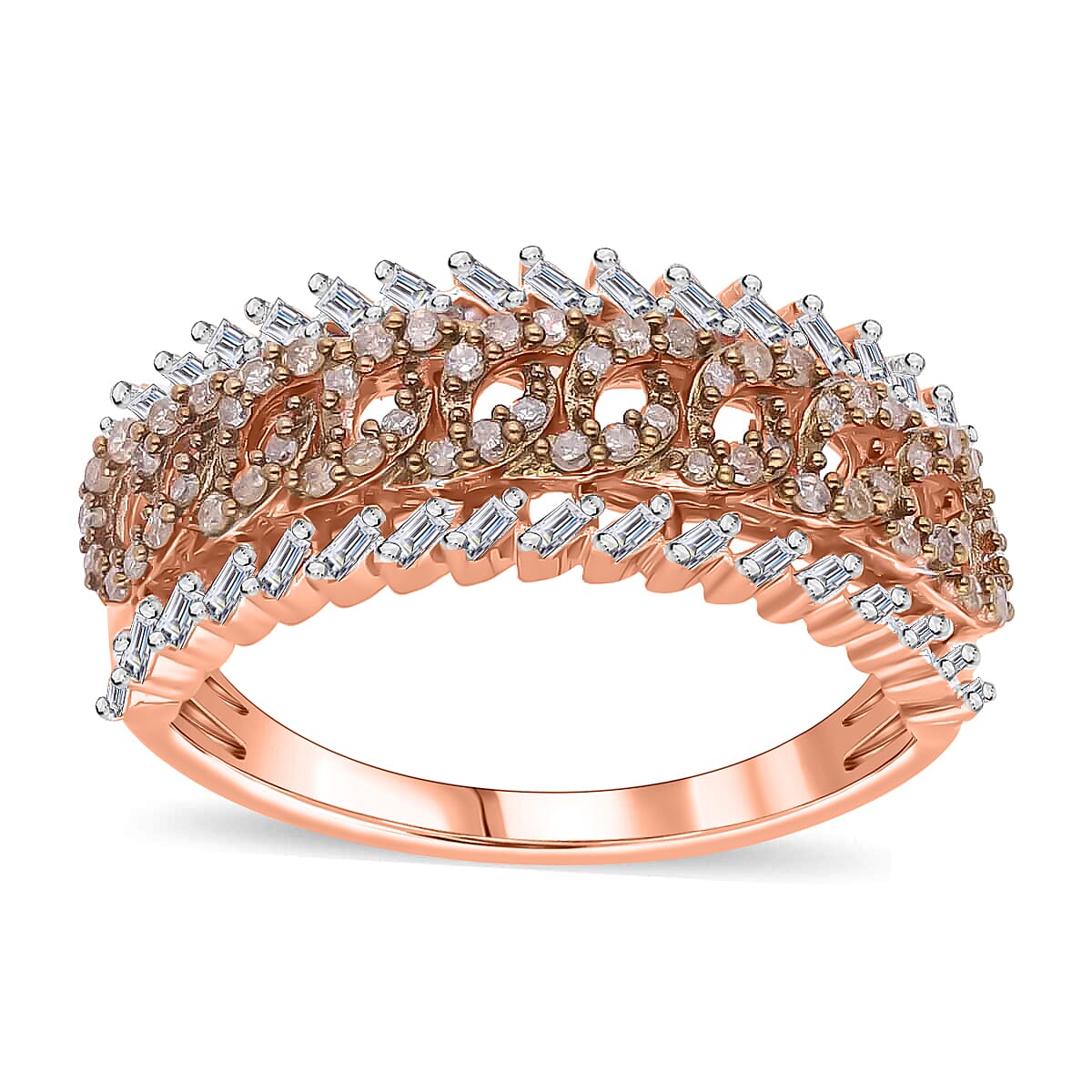 Natural Champagne Diamond Ring, White Diamond Accent Ring, Vermeil Rose Gold Over Sterling Silver Ring, Diamond Band Ring, Diamond Jewelry 0.50 ctw