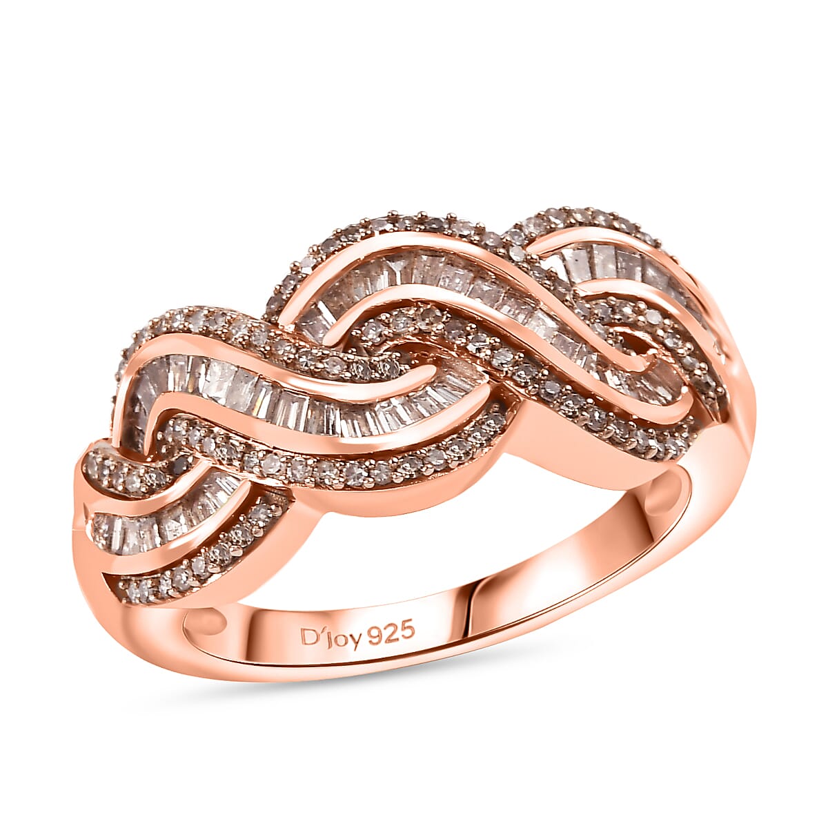 The natural diamond twisted ring in sterling silver symbolizes the intertwining of two lives. Featuring prong and channel-set diamonds, this silver ring combines durability and brilliance, making it an elegant choice for special occasions.