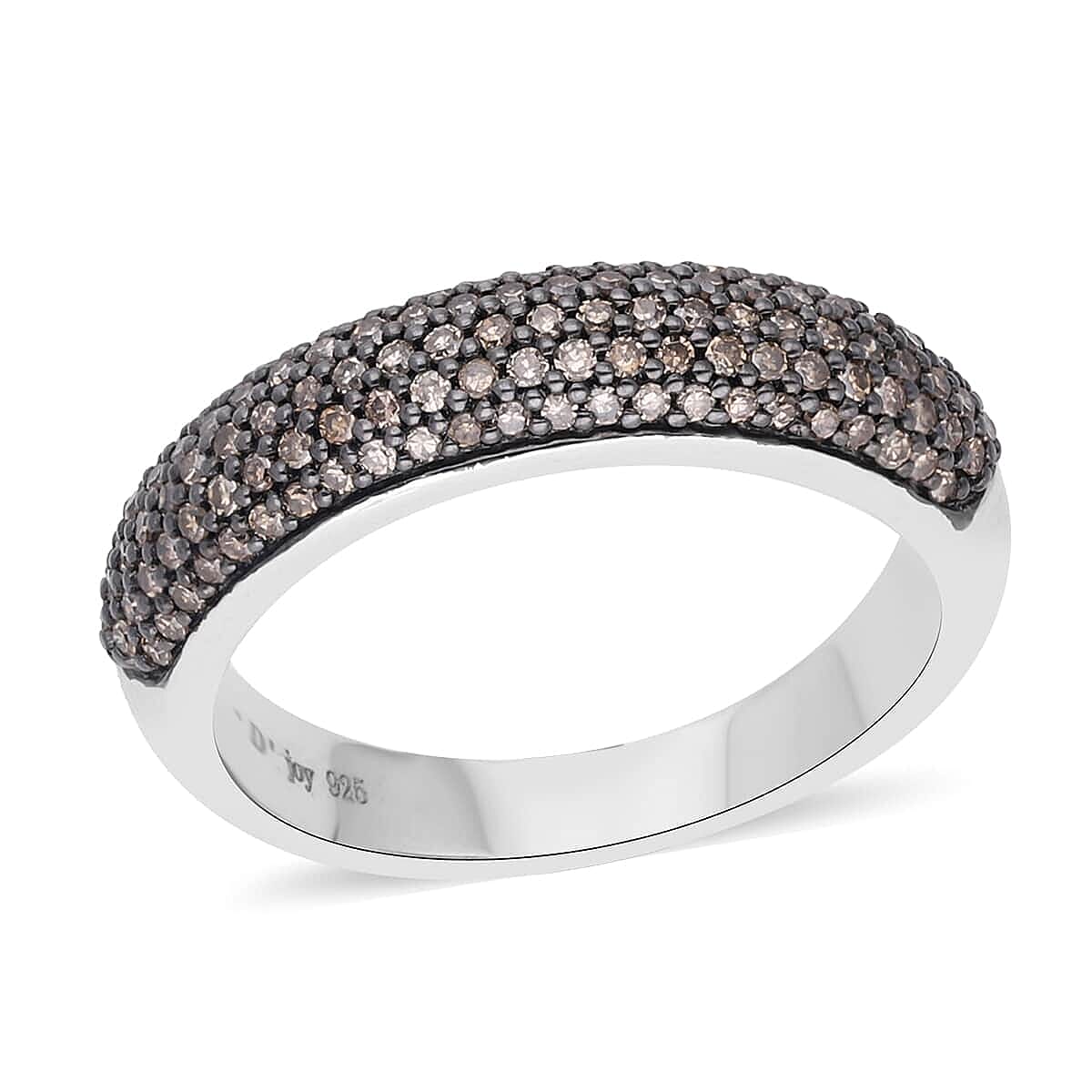 Natural Champagne Diamond Ring in Platinum Over Sterling Silver (Size 6.0) 0.50 ctw