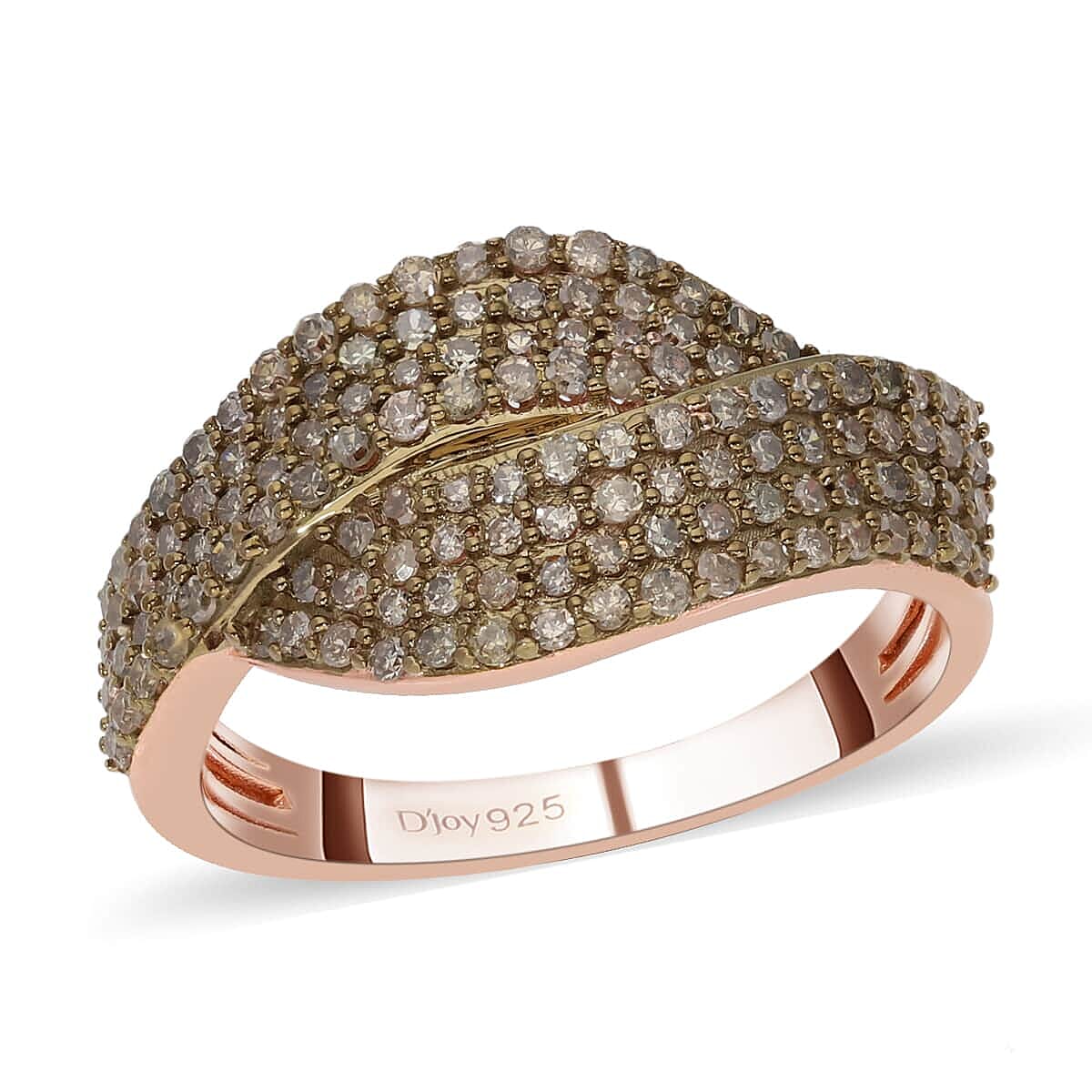 Natural Champagne Diamond Ring in Rhodium & Vermeil Rose Gold Over Sterling Silver (Size 7.0) 1.00