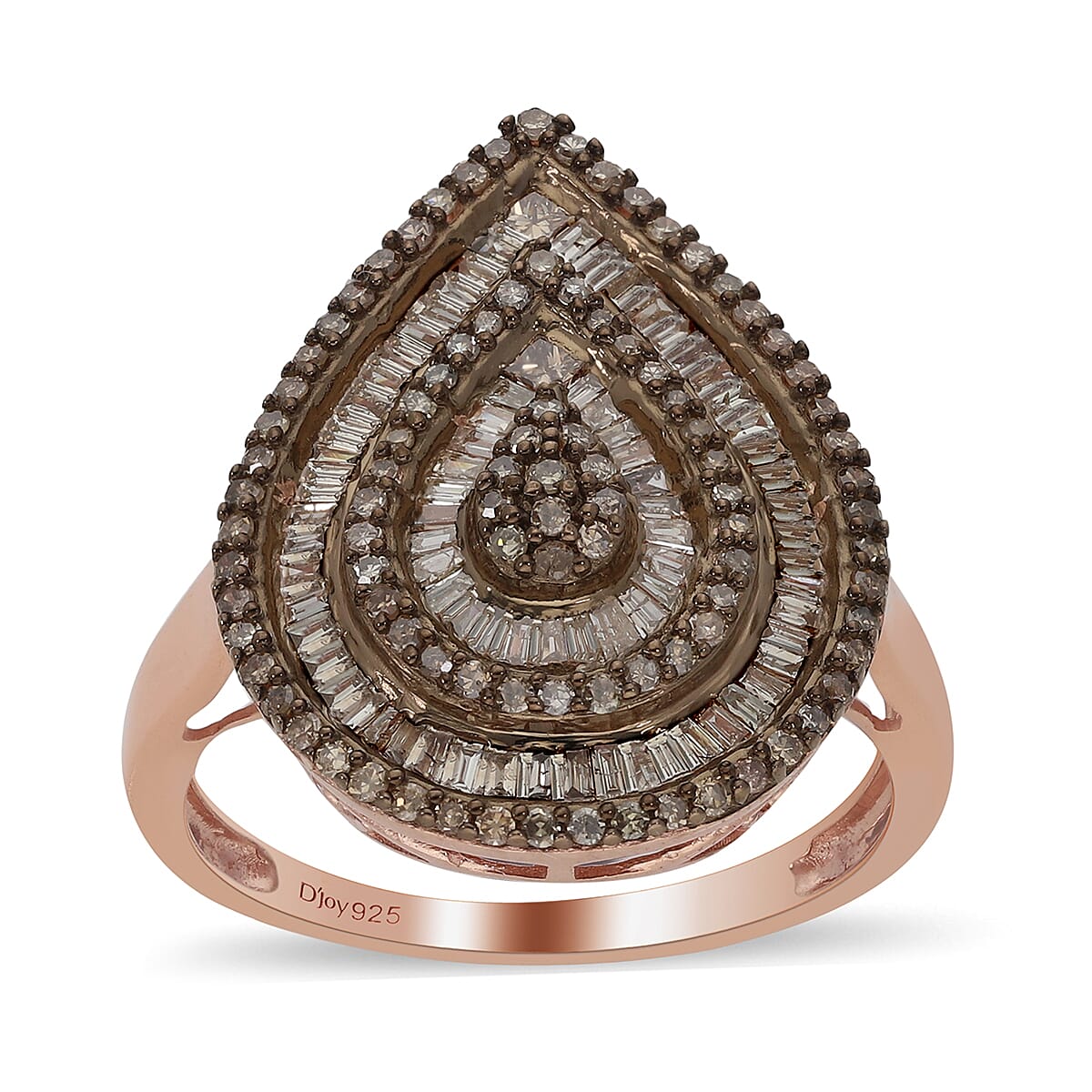 Natural Champagne Diamond Ring in Vermeil RG Over Sterling Silver (Size 10.0) 1.00 ctw