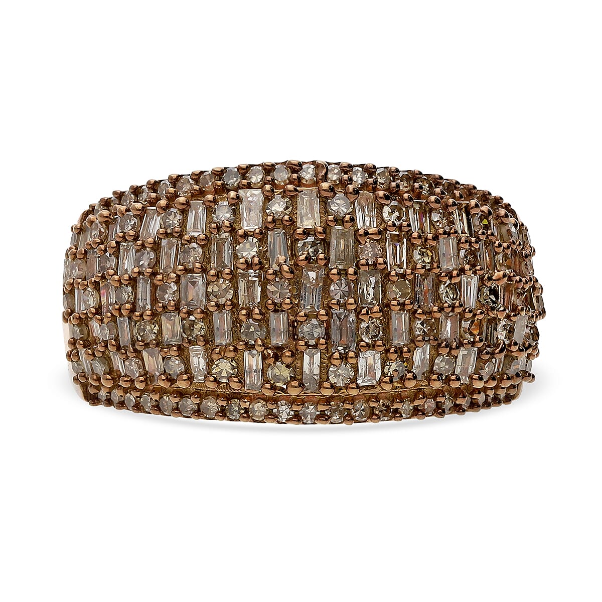 Natural Champagne Diamond Ring in Vermeil Rose Gold Over Sterling Silver 1.00 ctw