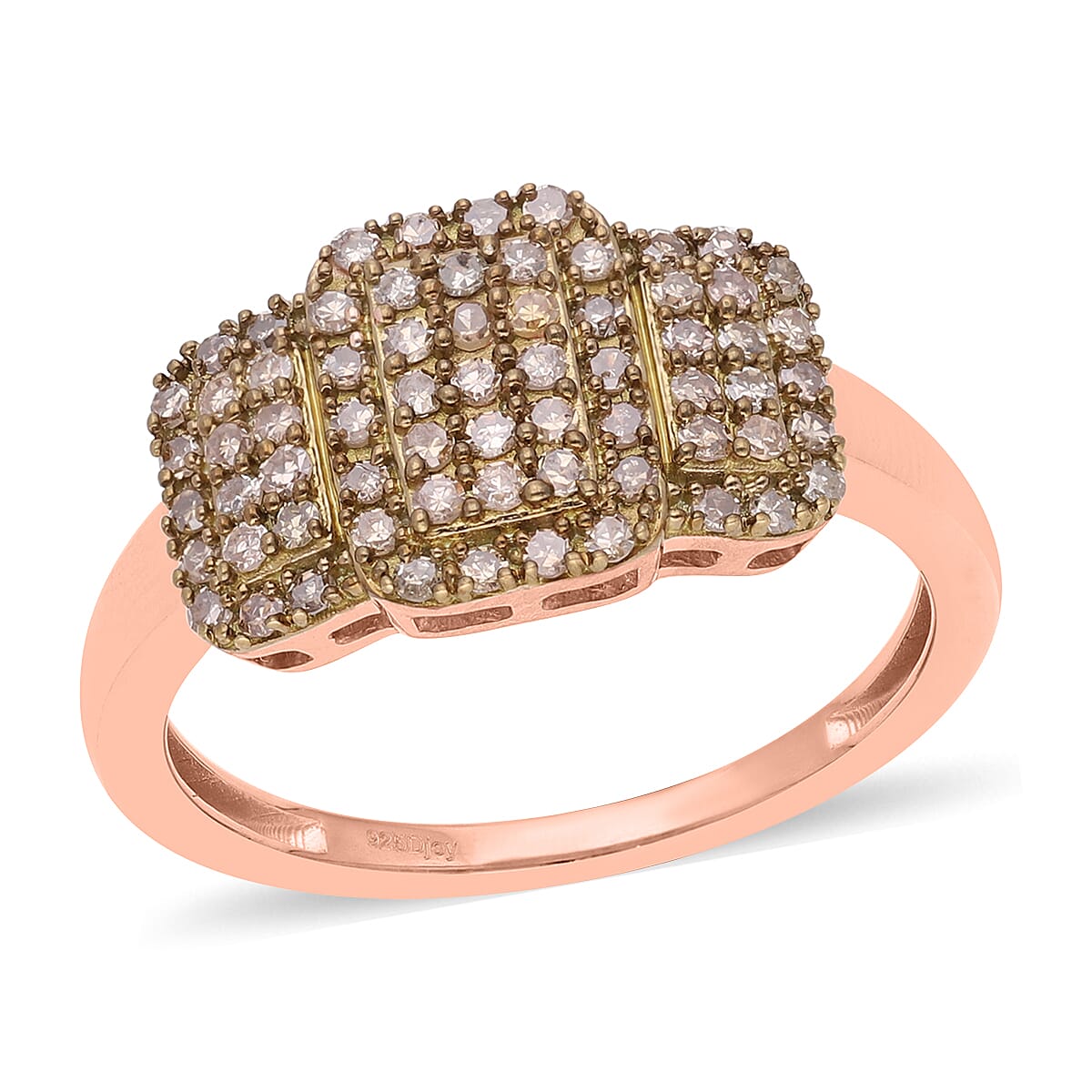 Natural Champagne Diamond Ring in Vermeil Rose Gold Over Sterling Silver (Size 6.0) 0.50 ctw