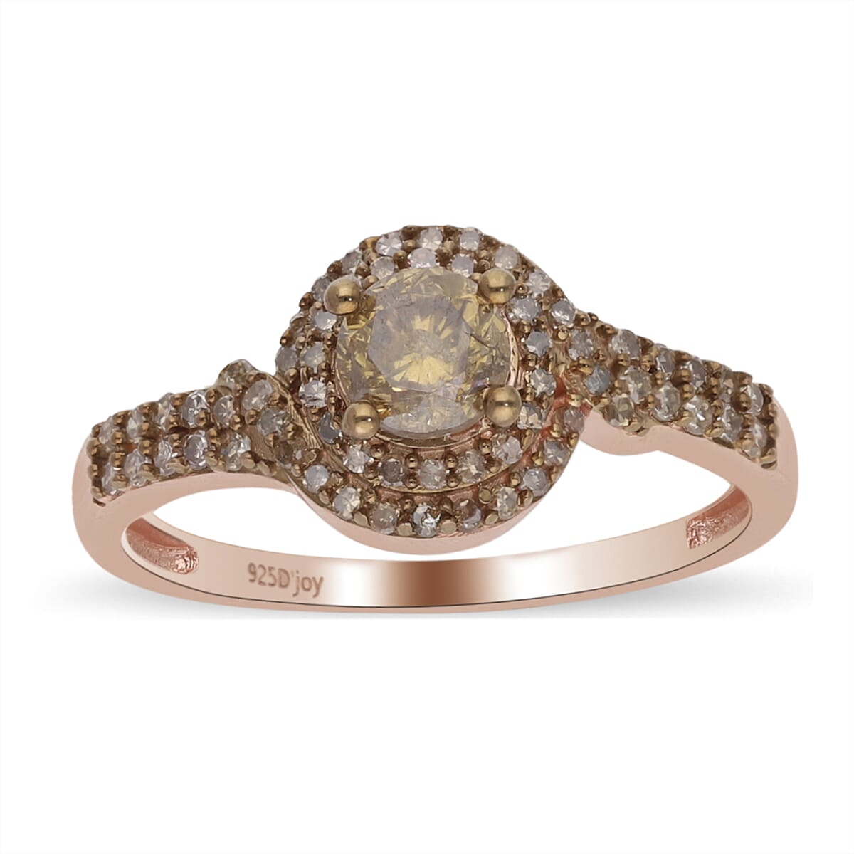 Natural Champagne Diamond Ring in Vermeil Rose Gold Over Sterling Silver (Size 8.0) 1.00 ctw