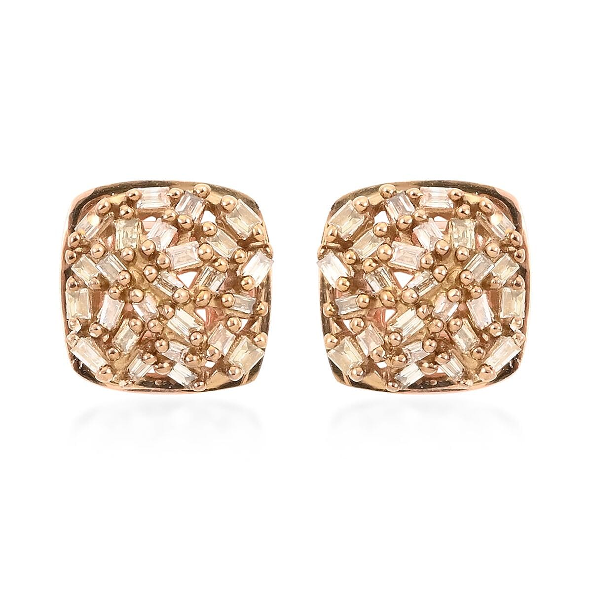 Natural Champagne Diamond Stud Earrings in Vermeil Rose Gold Over Sterling Silver 0.25 ctw