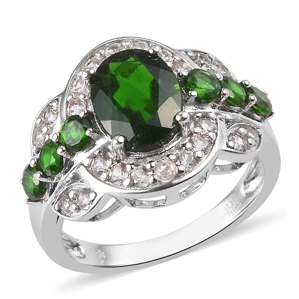 Chrome Diopside and Zircon Ring in Platinum Over Sterling Silver (Size 7.0) 3.65 ctw