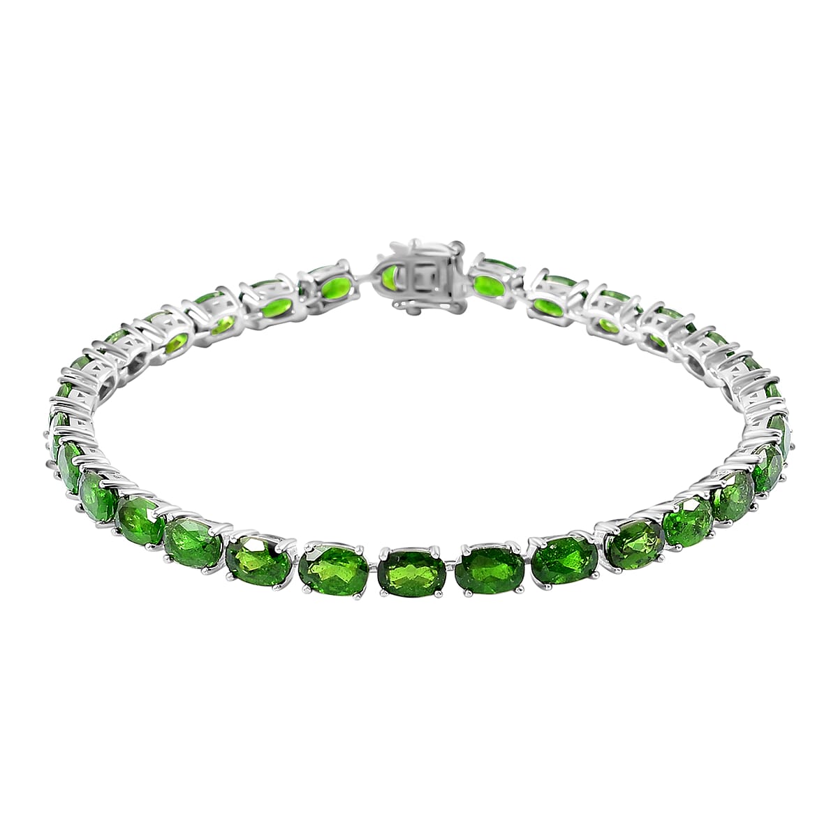 Natural Chrome Diopside Faceted Bracelet in Sterling Silver, Silver Tennis, Anniversary Gifts For Her (7.50 In) 15.30 ctw