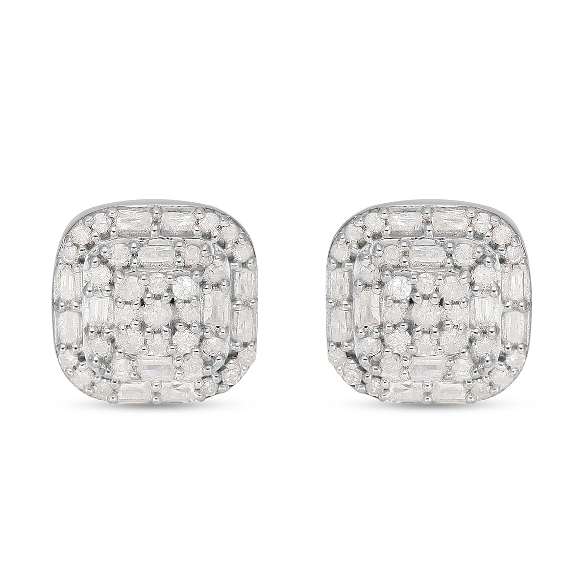 Natural Diamond Stud Earrings in Platinum Over Sterling Silver 0.50 ctw