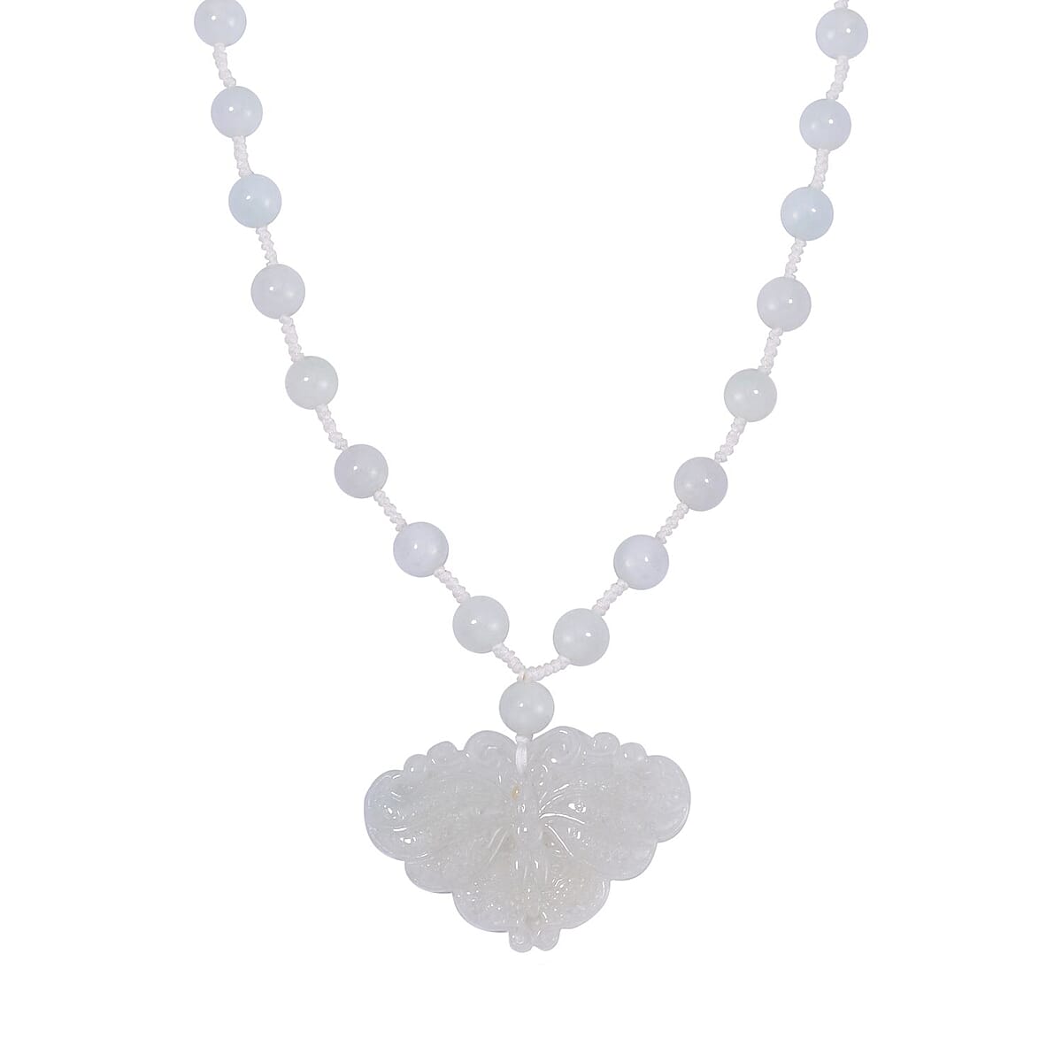 Natural Jade Carved Butterfly Necklace (20 Inches) in Rhodium Over Sterling Silver 200.00 ctw