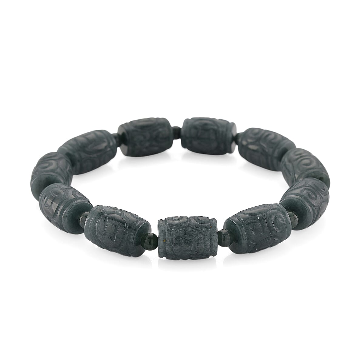 Natural Olmec Jadeite 210.00 ctw Barrel and Beaded Stretch Bracelet