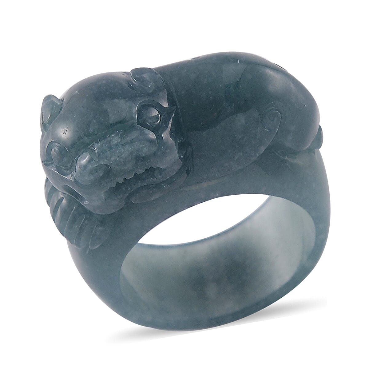 Natural Olmec Jadeite 60.00 ctw Carved Pixiu Band Ring (Size 8.0)