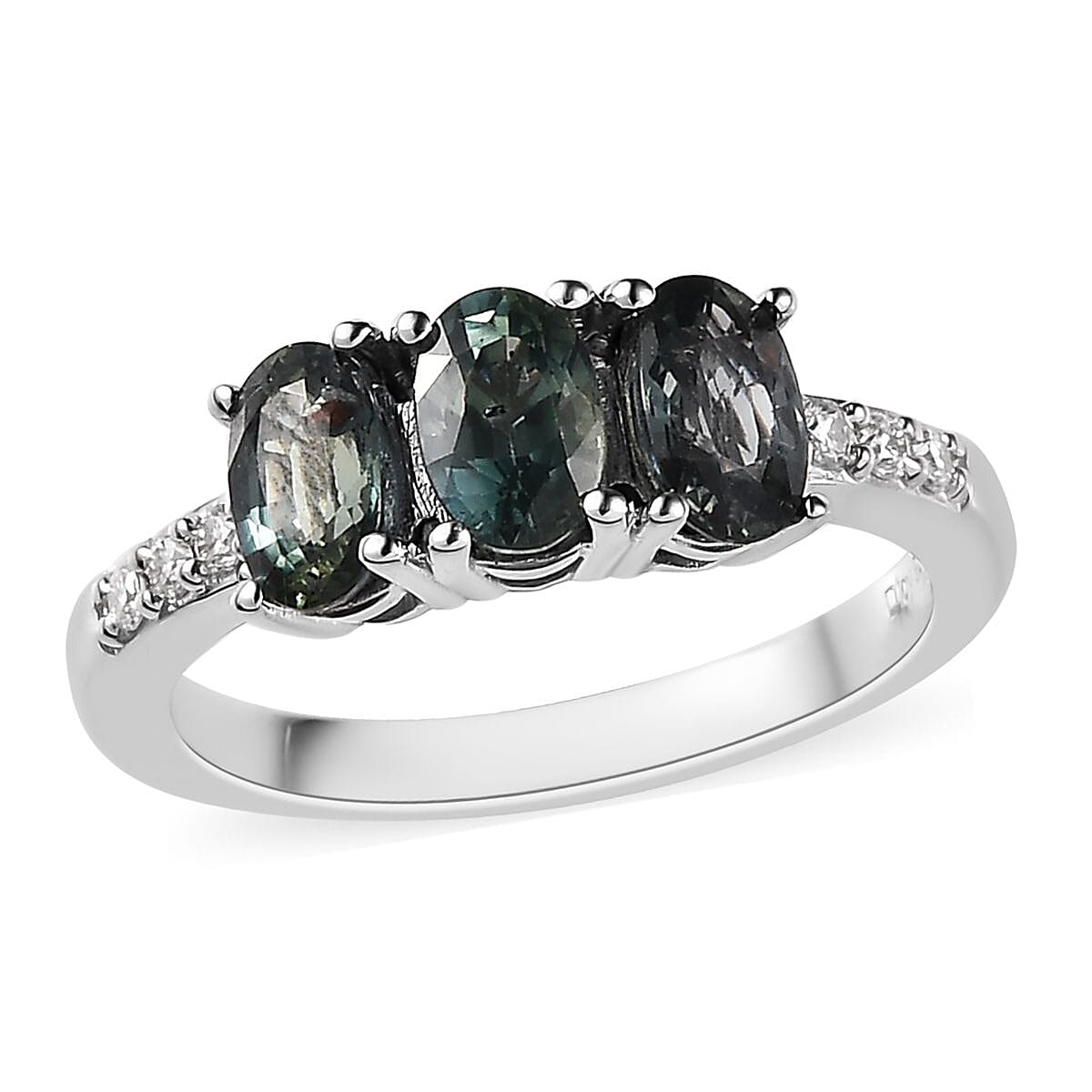 Natural Parti Sapphire and Moissanite Ring in Platinum Over Sterling Silver (Size 9.0) 1.50 ctw