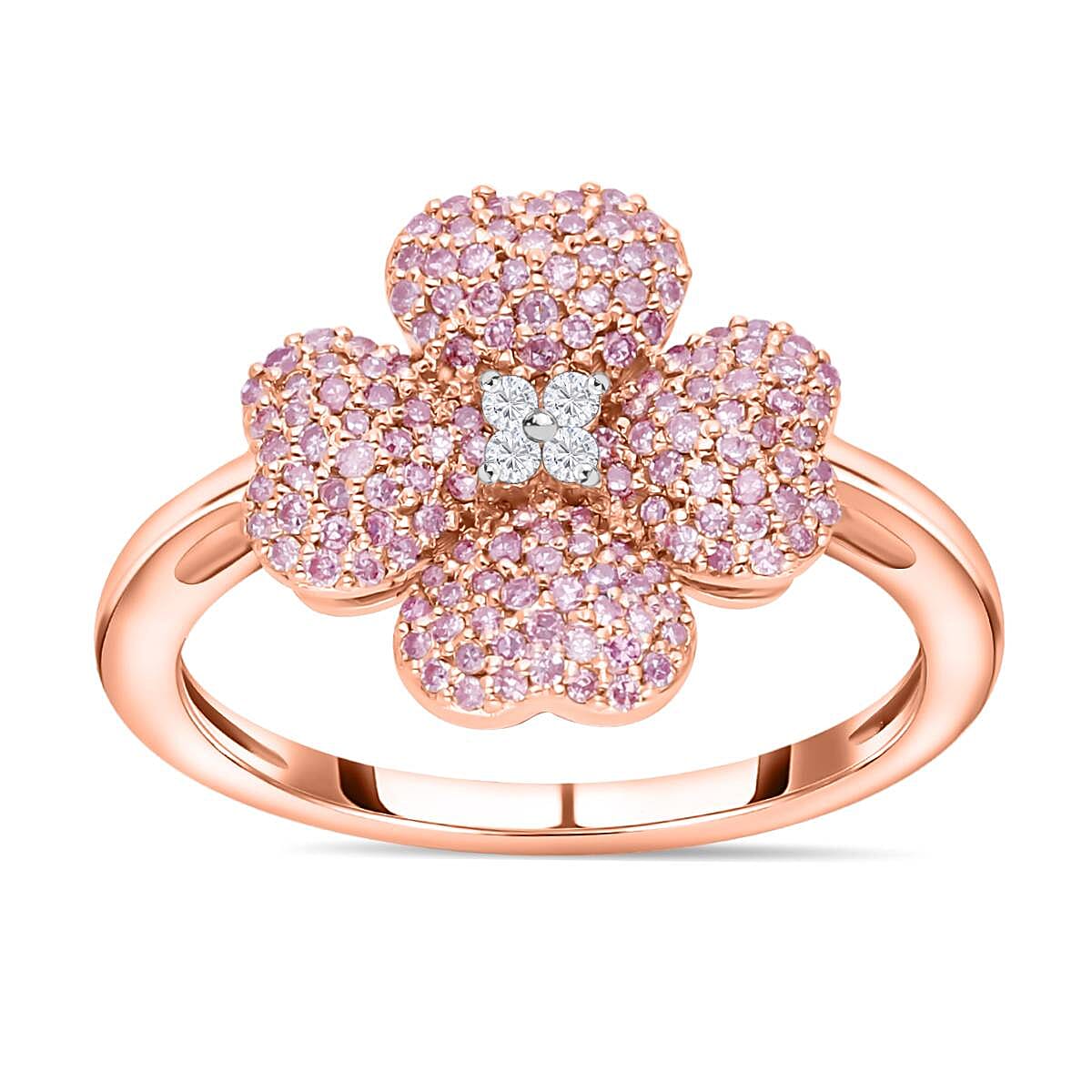 Natural Pink and White Diamond Four Leaf Clover Ring in Vermeil Rose Gold Over Sterling Silver (Size 7.0) 0.50 ctw