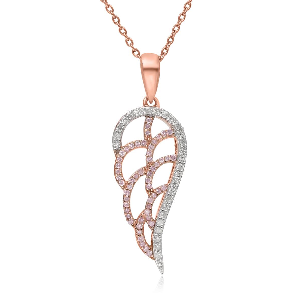 Natural Pink and White Diamond I3 Angel Wing Pendant Necklace 18 Inches in Vermeil Rose Gold Over Sterling Silver 0.25 ctw