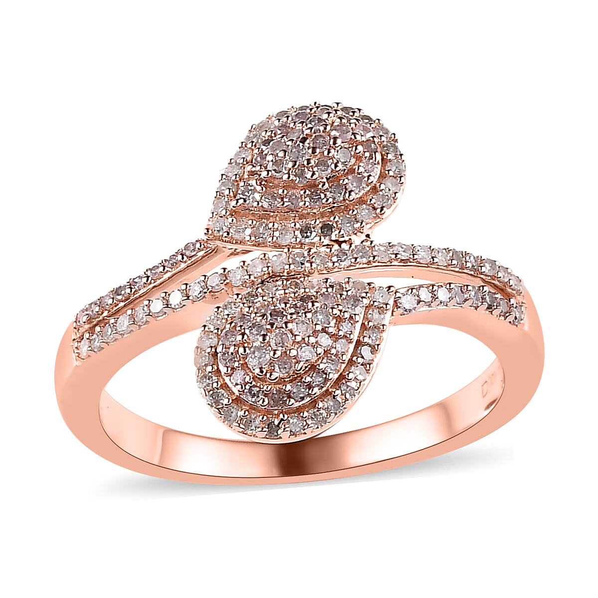 Natural Pink and White Diamond I3 Bypass Ring in Vermeil Rose Gold Over Sterling Silver (Size 7.0) 0.50 ctw