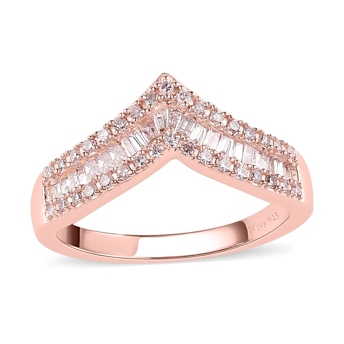Natural Pink Diamond Chevron Ring in Vermeil Rose Gold Over Sterling Silver (Size 8.0) 0.33 ctw