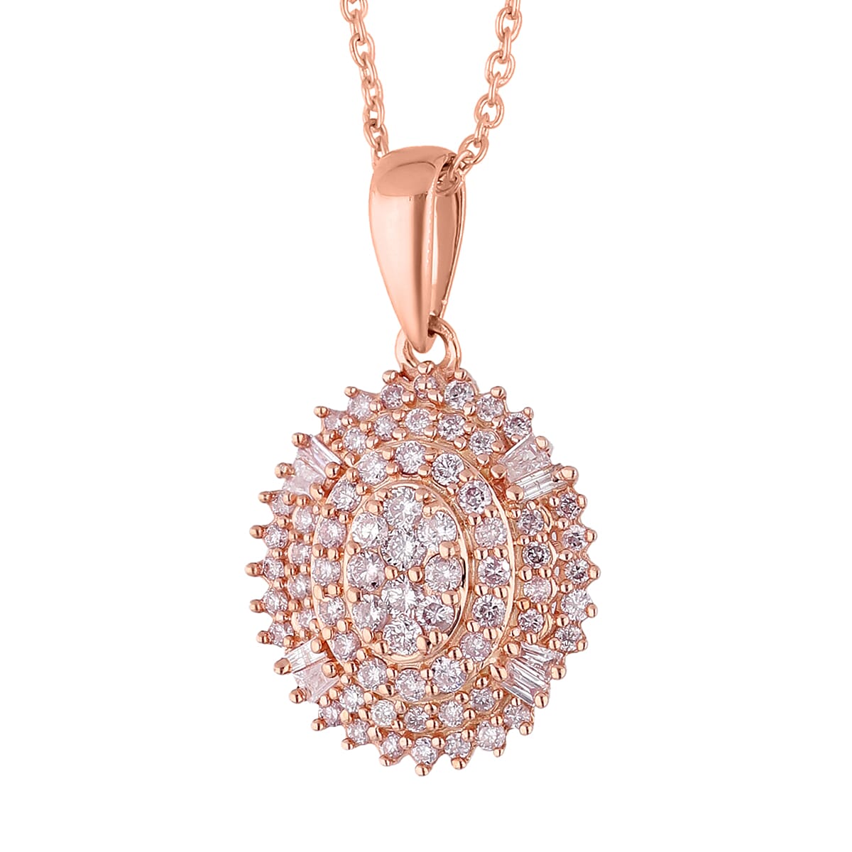Natural Pink Diamond I3 Cluster Pendant Necklace 16-18 Inches in Vermeil Rose Gold Over Sterling Silver 0.50 ctw