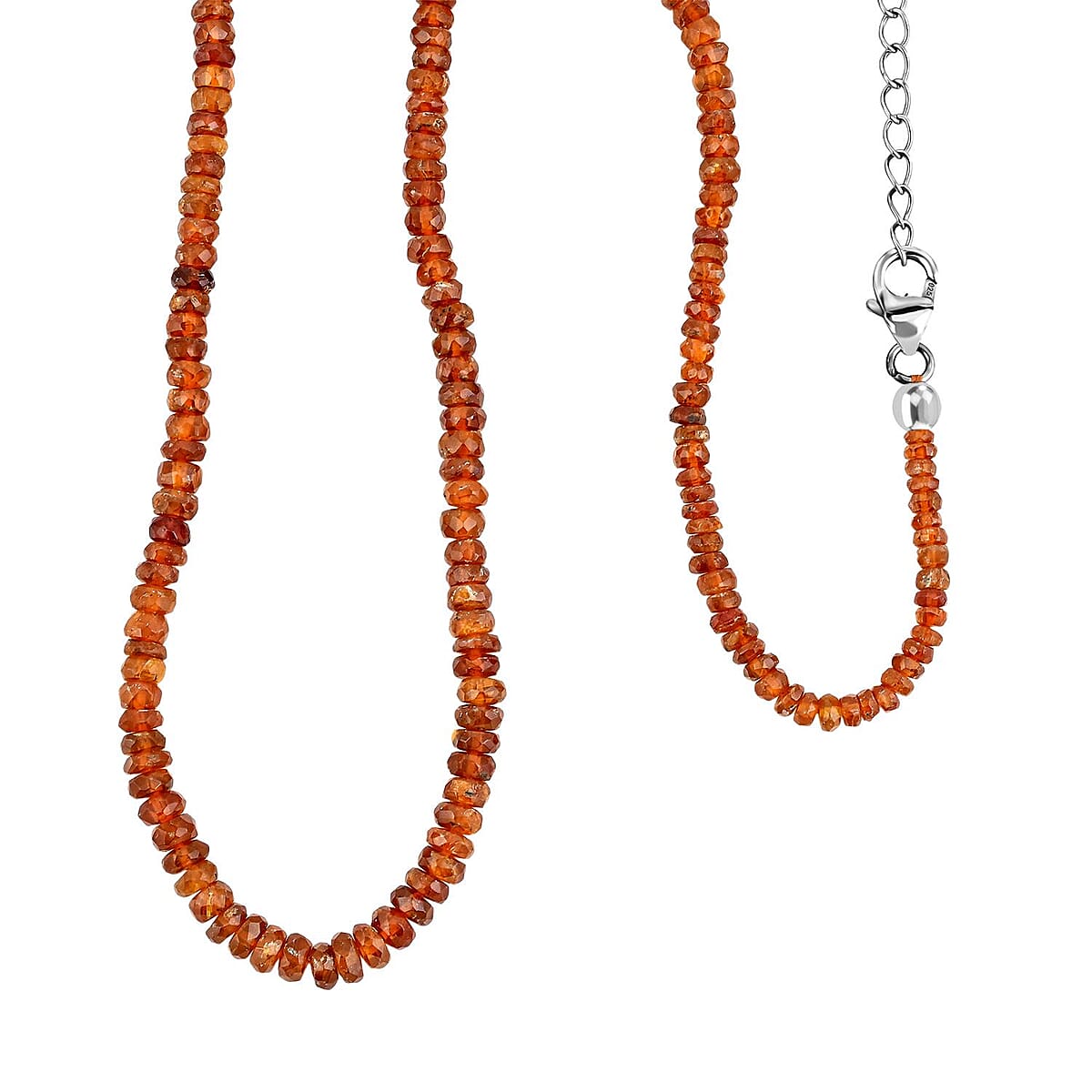 Natural Tanzania Tangerine Kyanite Beaded Necklace 18 Inches in Platinum Over Sterling Silver 63.00 ctw