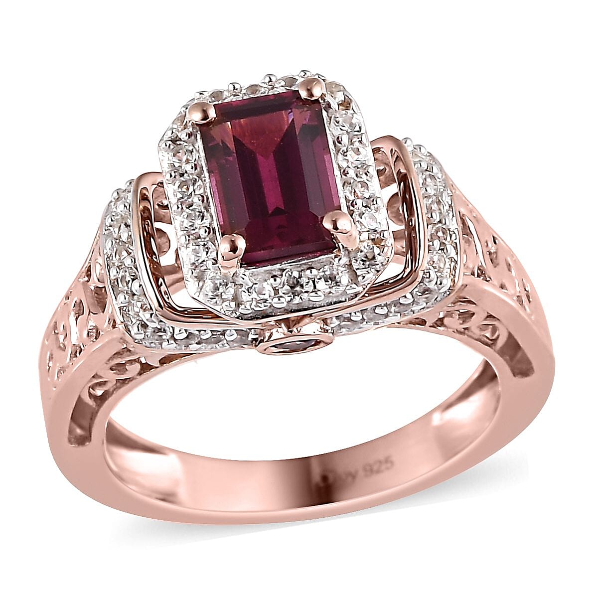 Natural Tanzanian Wine Garnet and Multi Gemstone Ring in Vermeil Rose Gold Over Sterling Silver 1.75 ctw