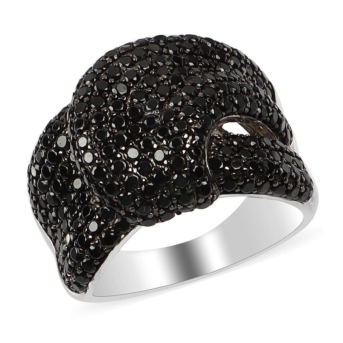 Bold and beautiful is what you will find with this intriguing ring. Bursting in endless round-shaped gemstones as the Thai black spinel’s flicker effortlessly. It beams in polished platinum over sterling silver, an exceptional choice to update your look no matter your occasion.