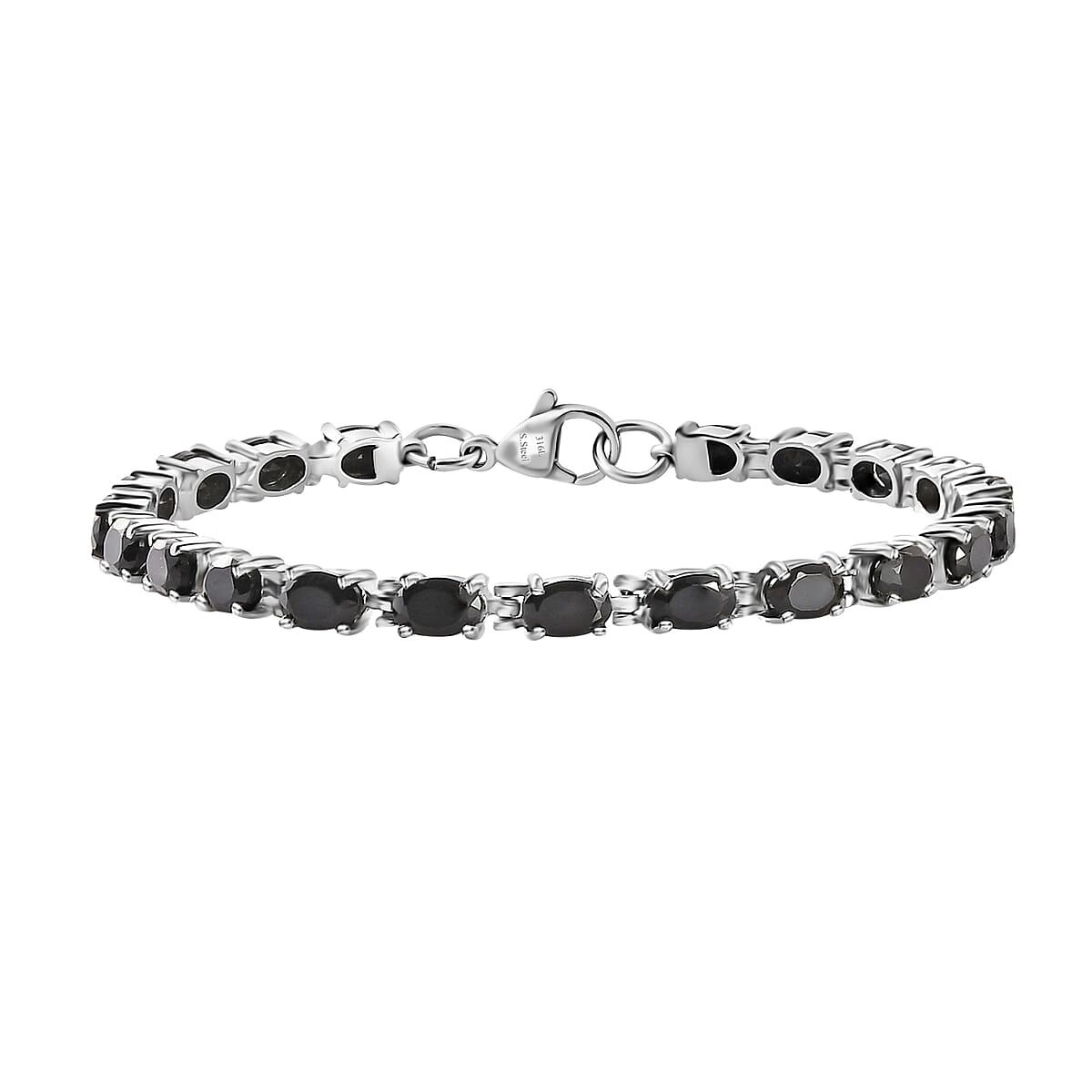 Natural Thai Black Spinel Tennis Bracelet , Black Spinel Bracelet , Line Bracelet , Stainless Steel Bracelet (7.25 In) 12.90 ctw