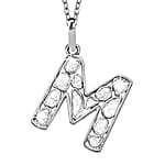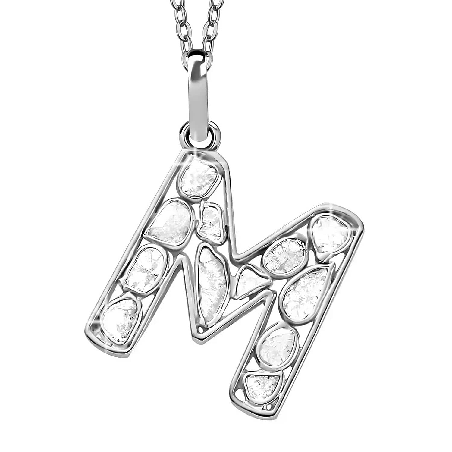 Natural Uncut Polki Diamond 0.50 ctw Initial M Pendant Necklace in Platinum Over Sterling Silver 20 Inches
