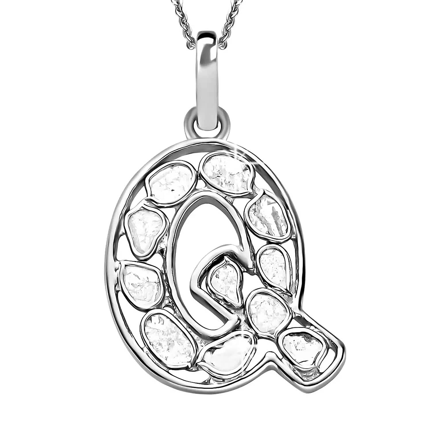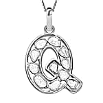 Natural Uncut Polki Diamond 0.50 ctw Initial Q Pendant Necklace in Platinum Over Sterling Silver 20 Inches