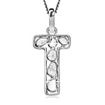 Natural Uncut Polki Diamond 0.50 ctw Initial T Pendant Necklace in Platinum Over Sterling Silver 20 Inches