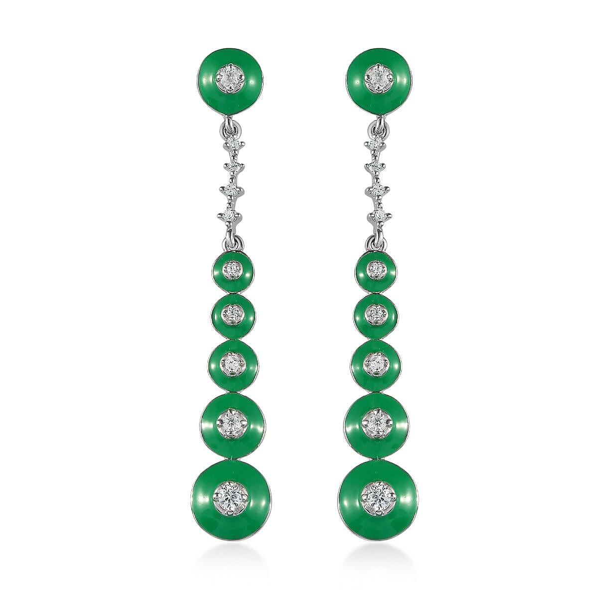 Natural White Zircon and Enameled Dangling Earrings in Platinum Over Sterling Silver 0.60 ctw