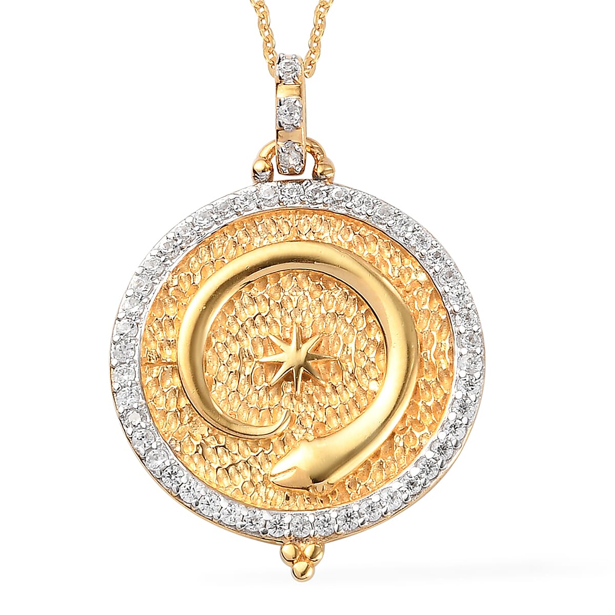 Natural White Zircon Eternal Love Starburst Lucky Coin Snake Pendant Necklace 20 Inches in Vermeil Yellow Gold Over Sterling Silver 1.00 ctw