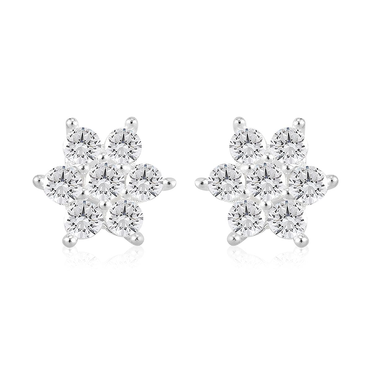 Natural White Zircon Floral Stud Earrings in Sterling Silver 1.00 ctw