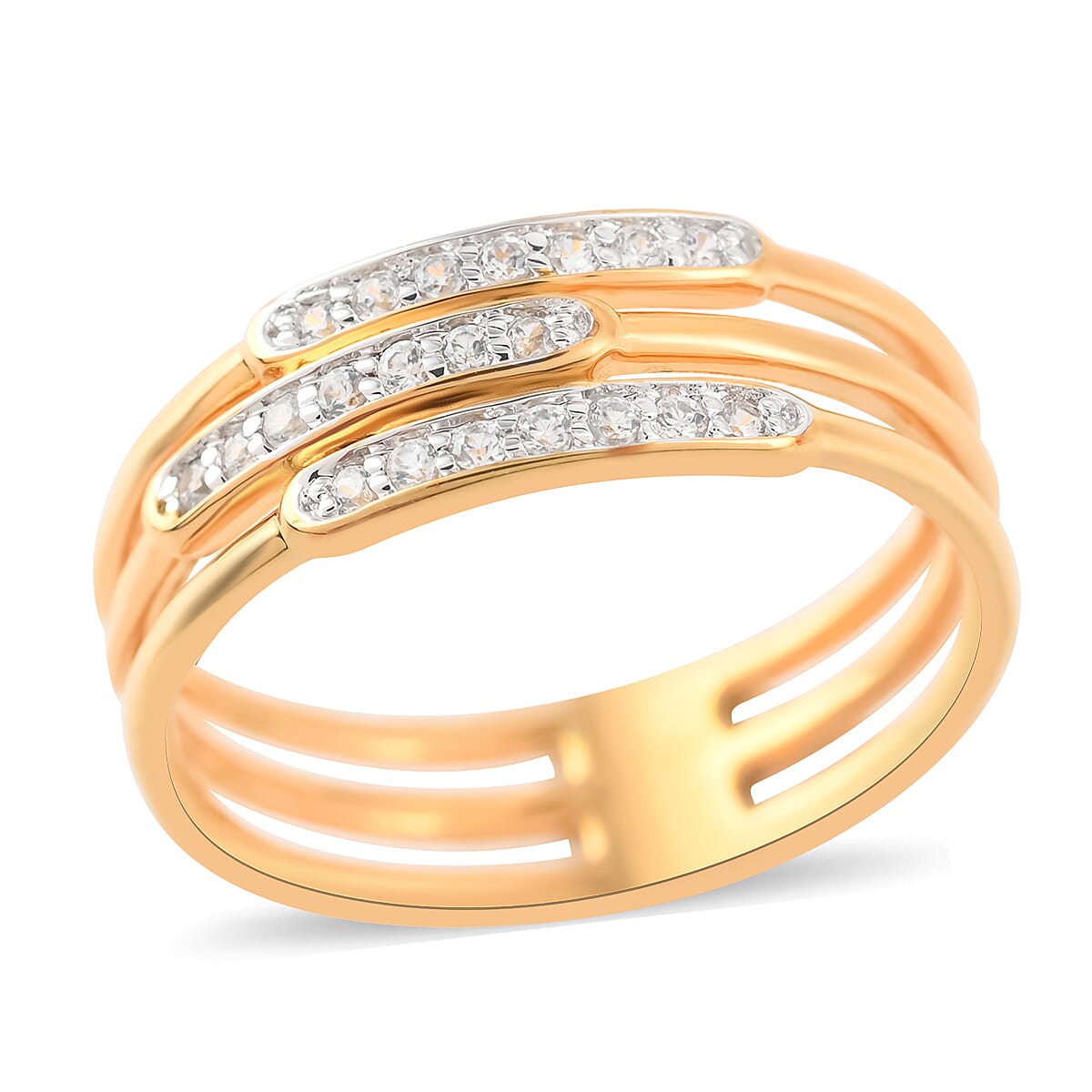 Natural White Zircon Multi Band Ring in 14K Yellow Gold Over Sterling Silver (Size 5.0) 0.30 ctw