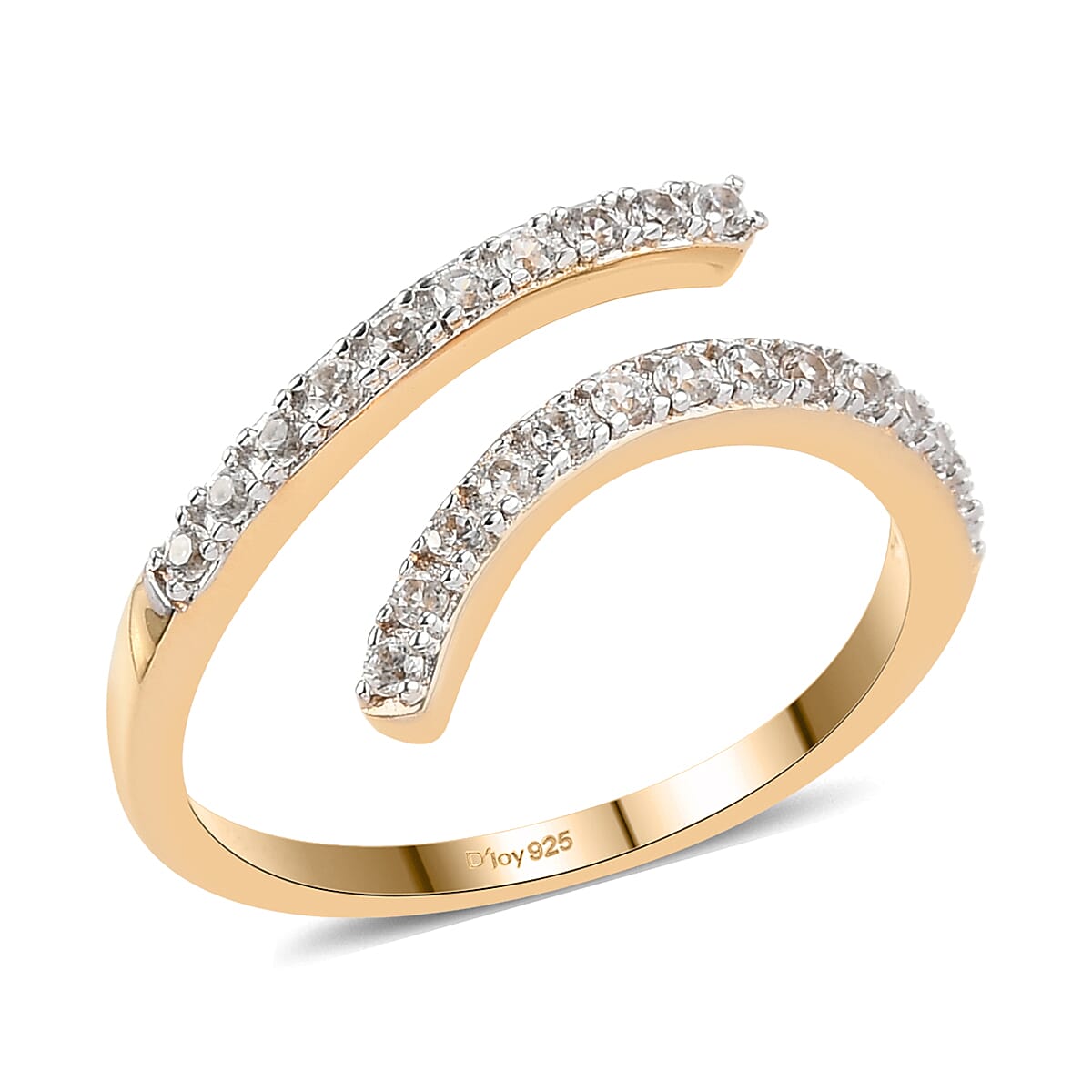 Natural White Zircon Snake Bypass Thumb Ring in Vermeil Yellow Gold Over Sterling Silver (Size 22.0) 0.50 ctw
