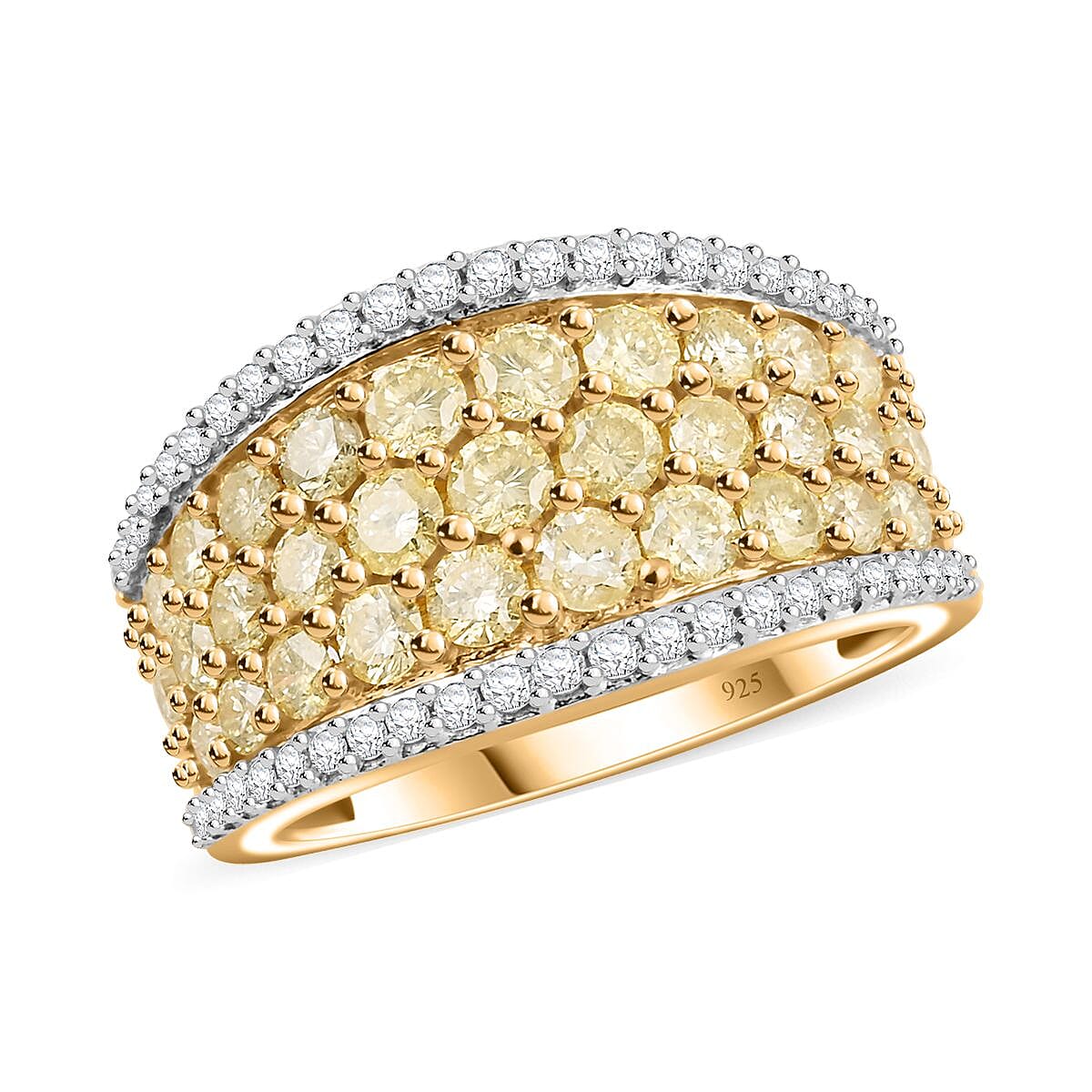 Natural Yellow and White Diamond I3 Ring in 14K Yellow Gold Over Sterling Silver (Size 5.0) 1.50 ctw