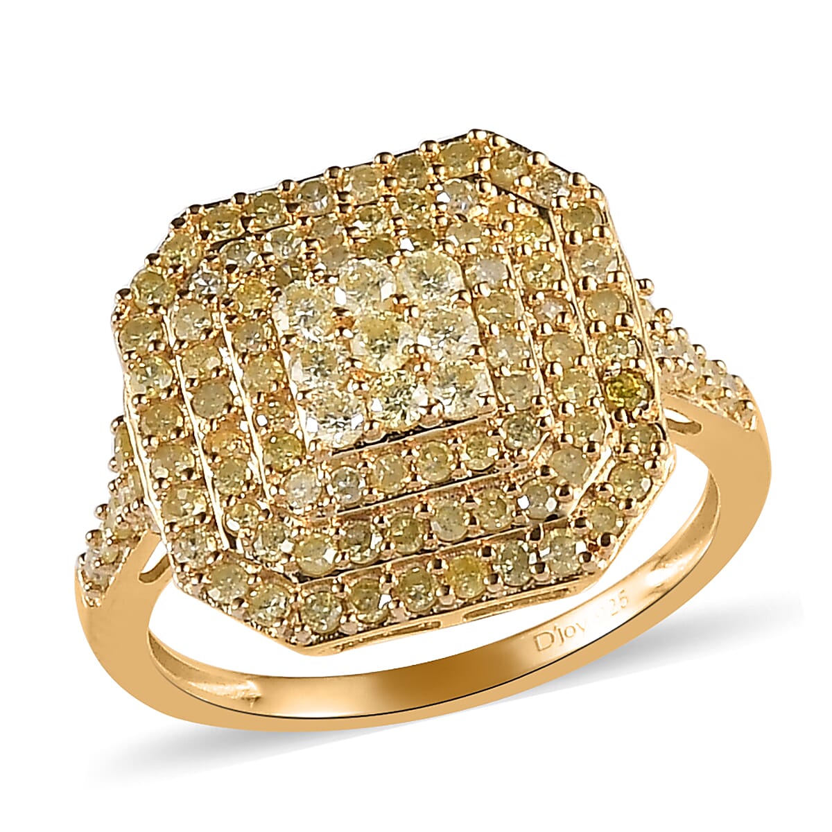 Natural Yellow Diamond I3 Cluster Ring in Vermeil Yellow Gold Over Sterling Silver (Size 7.0) 1.00 ctw