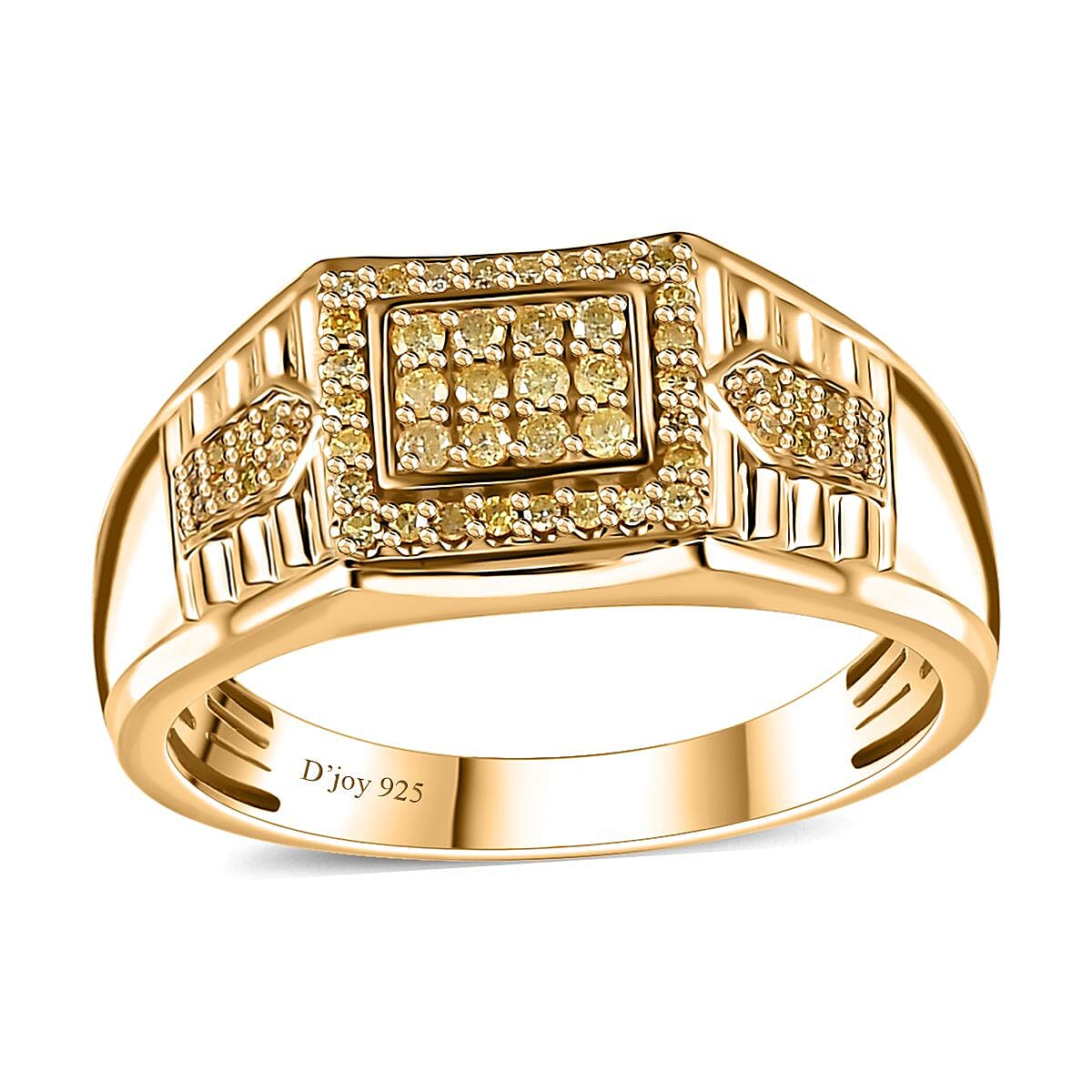 Natural Yellow Diamond (I3) Men's Ring in 18K Vermeil Yellow Gold Over Sterling Silver (Size 10.0) 0.50 ctw