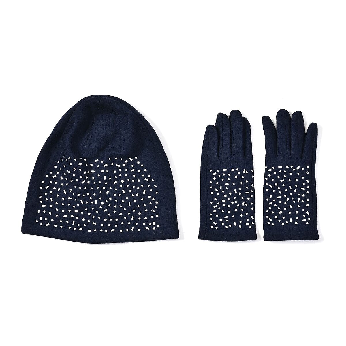 Navy Cashmere Blend Crystal Beanie and 1 Pair Gloves Set