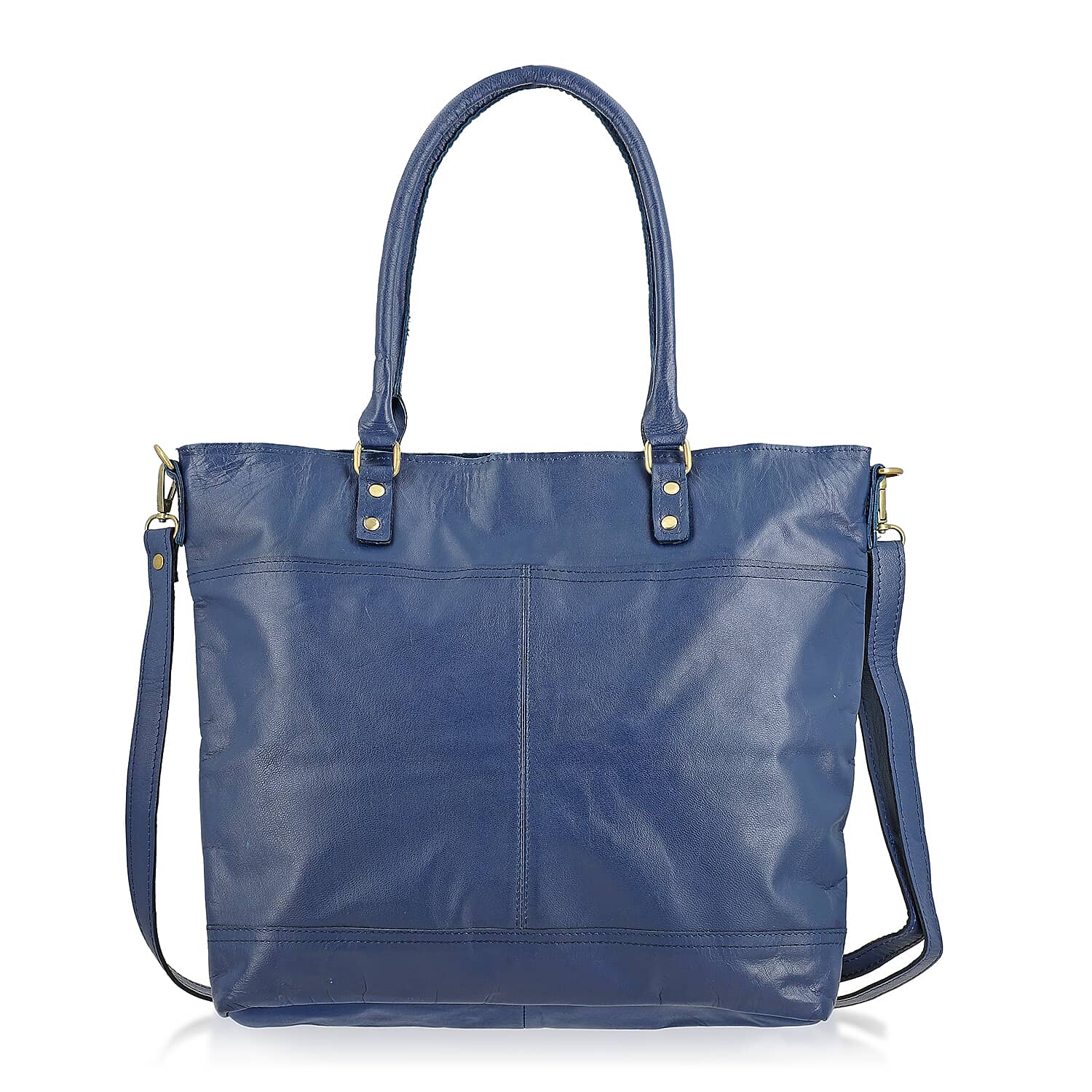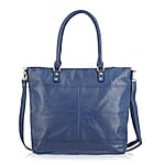 Navy Genuine Leather RFID Protected Tote Bag with Adjustable Detachable Shoulder Strap