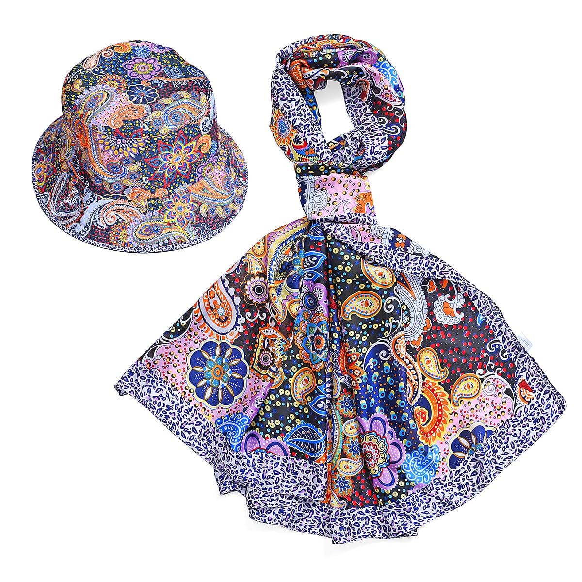 Navy Paisley Bucket Hat and Polyester Scarf Set - One Size