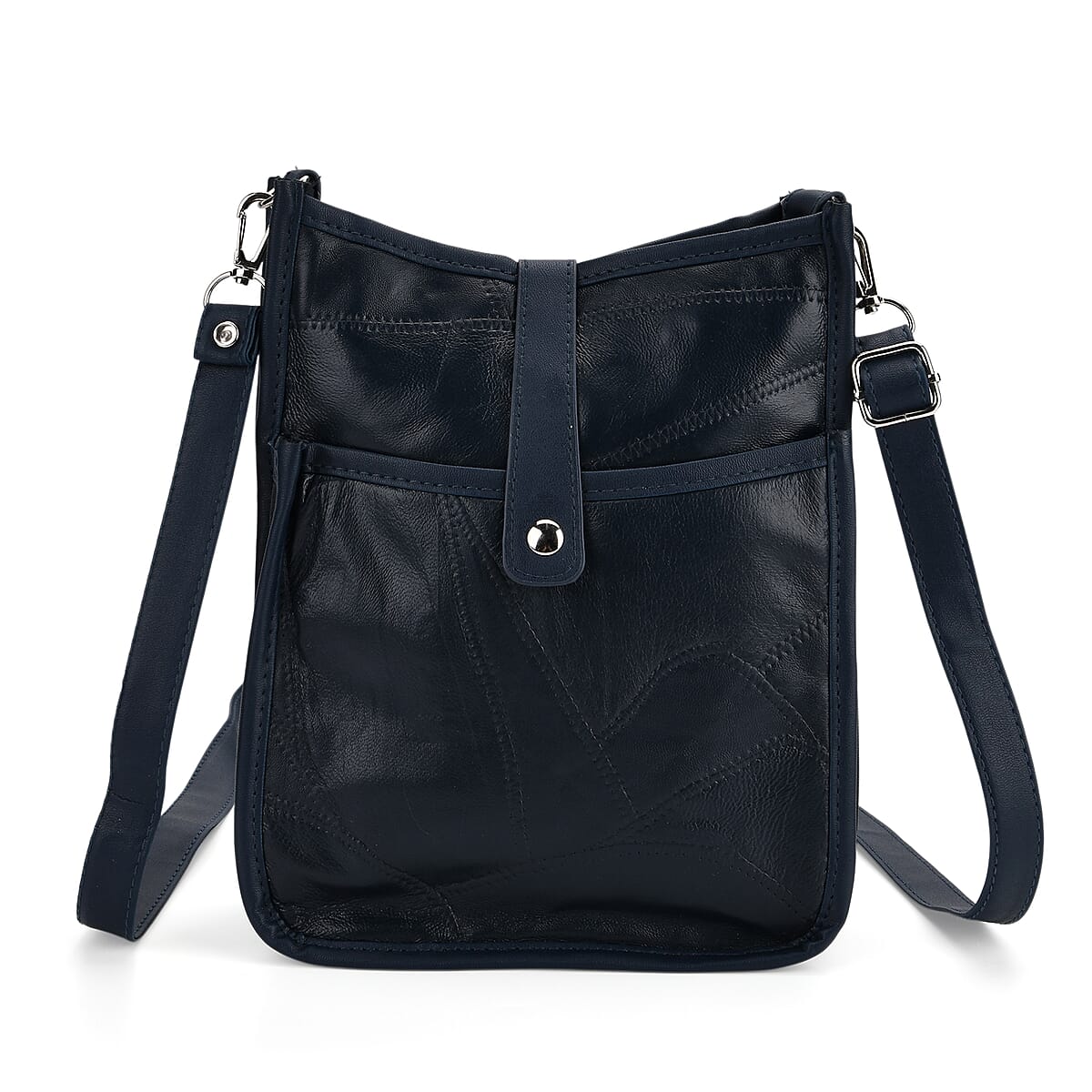 Navy Patch Work Sheep Leather Crossbody Bag with Adjustable Shoulder Strap
