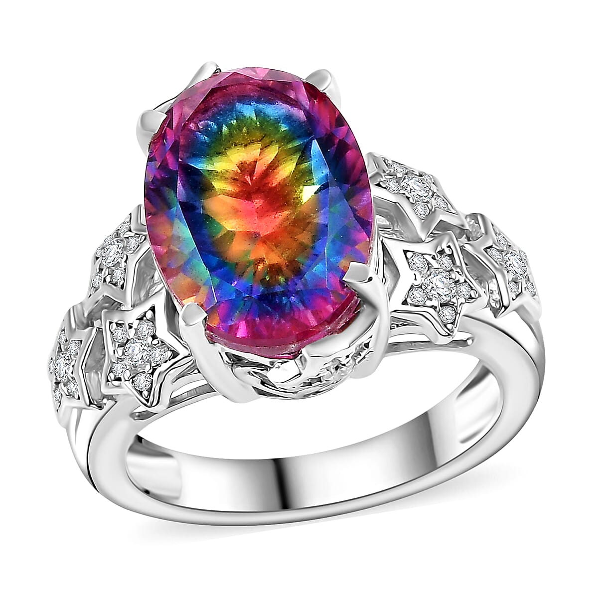 Nebula Quartz Doublet and Moissanite 6.50 ctw Celestial Stars Ring in Rhodium Over Sterling Silver (Size 9.0)