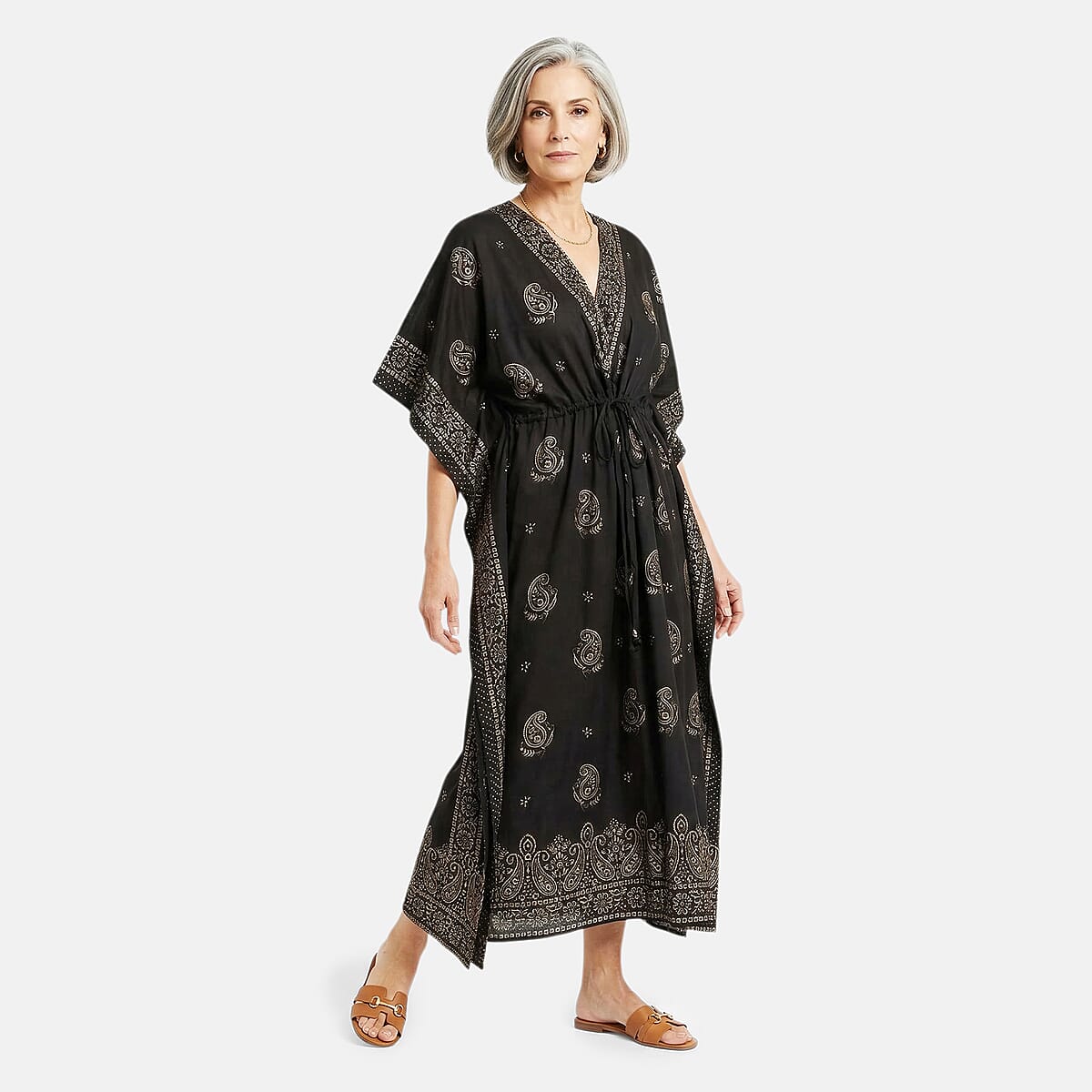 Neelam Fashions Black Gold Foil Kaftan - One Size Fits Most